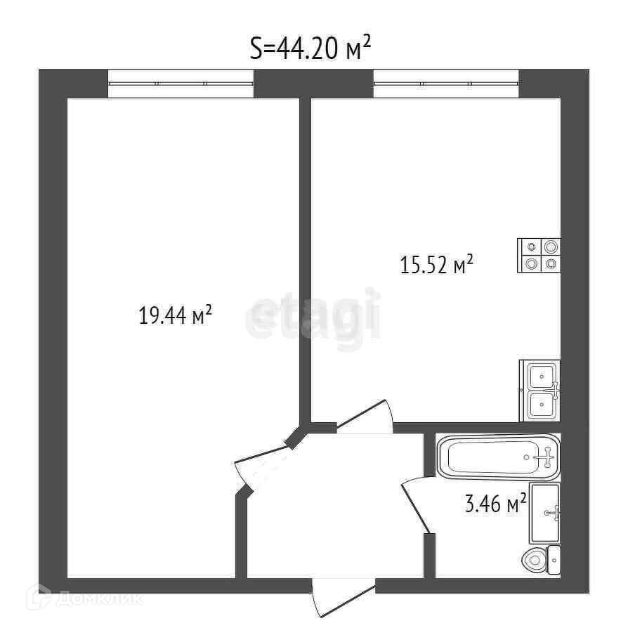Общая площадь 44.2 м2