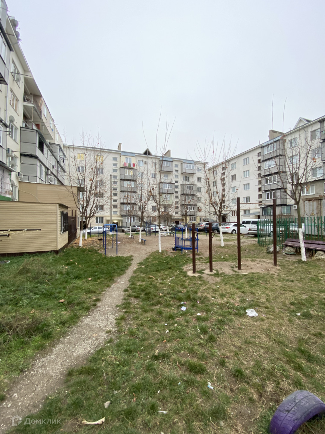Во дворе дома располагается детская площадка и парковка для авто.