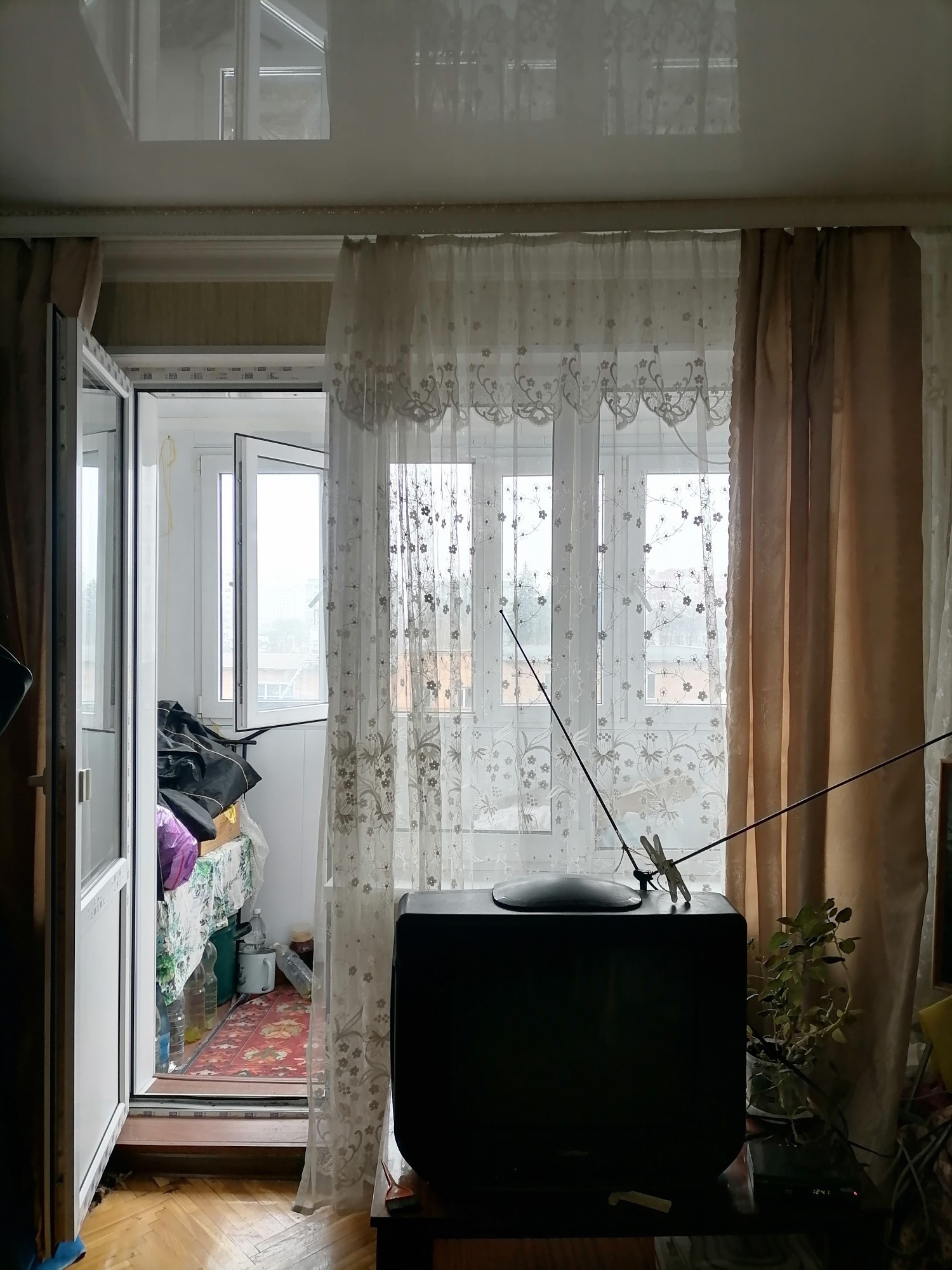 Балкон увеличен, застеклен.