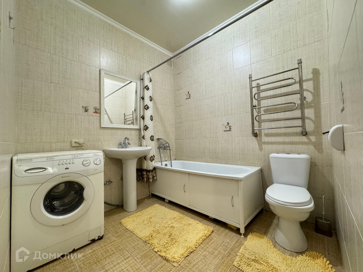 Санузел совмещен в кафеле.