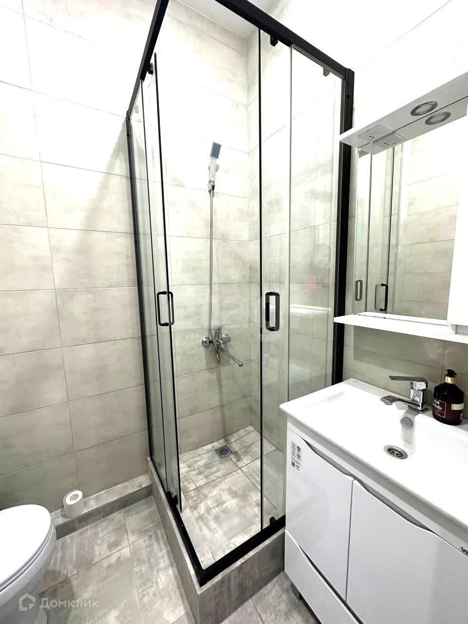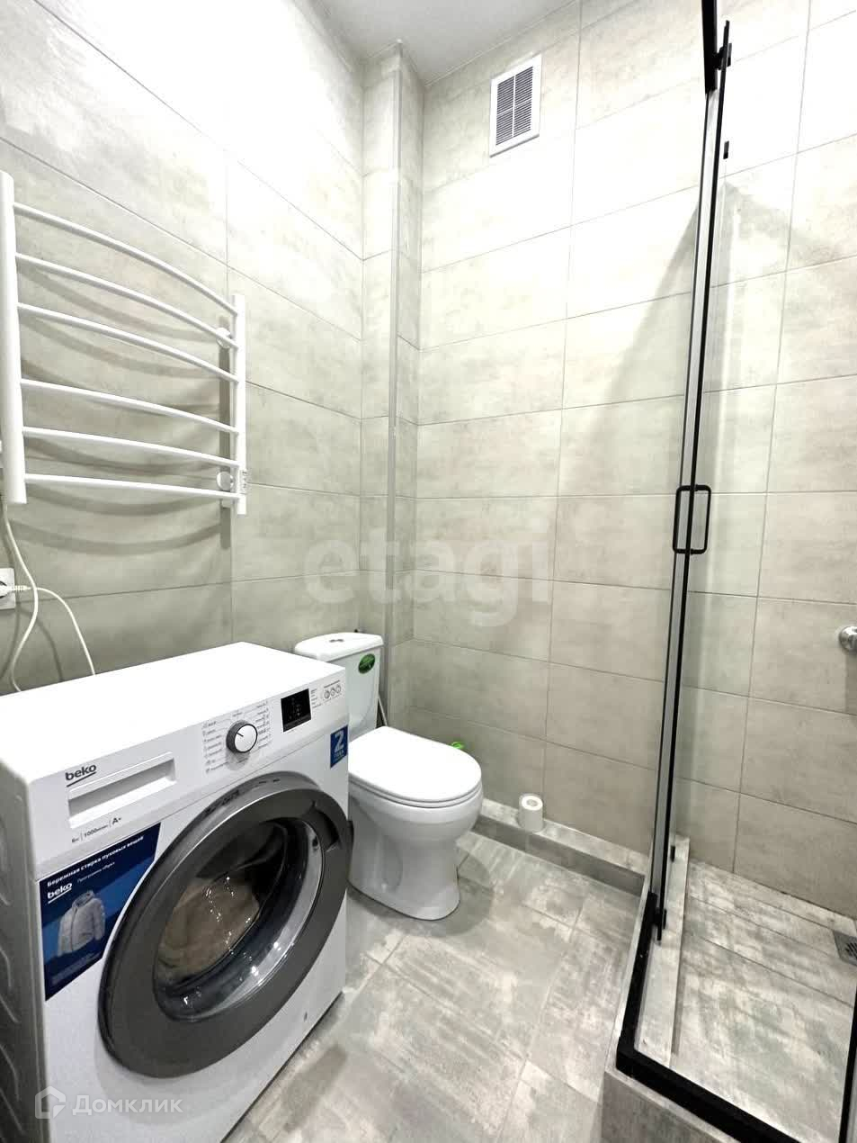 в ванной душевая кабина, стиральная машинка.