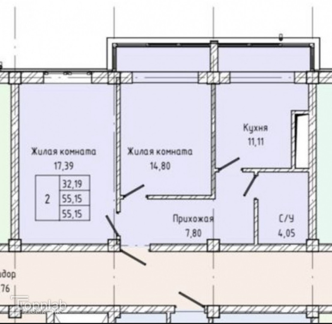 Общая площадь 55.5 м2