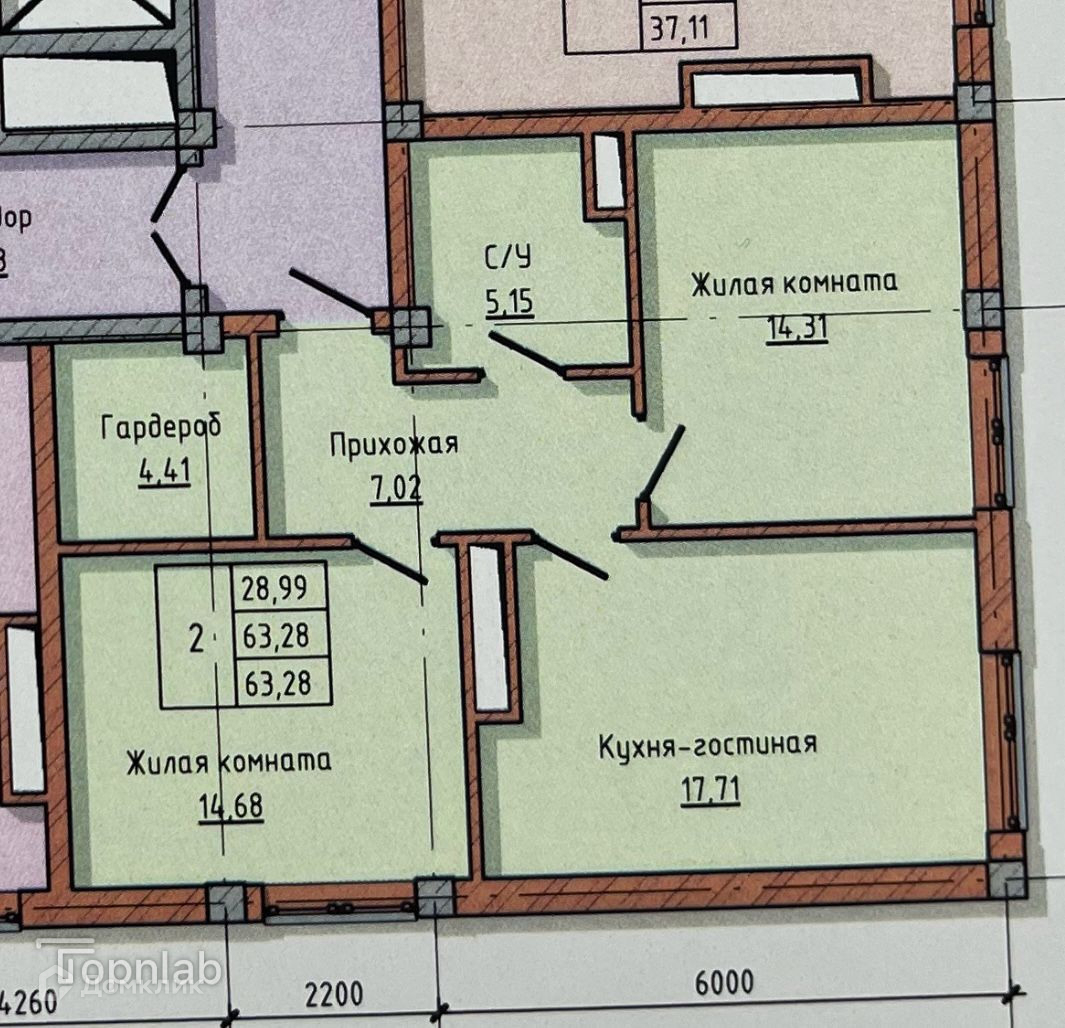 Общая площадь 61 м2