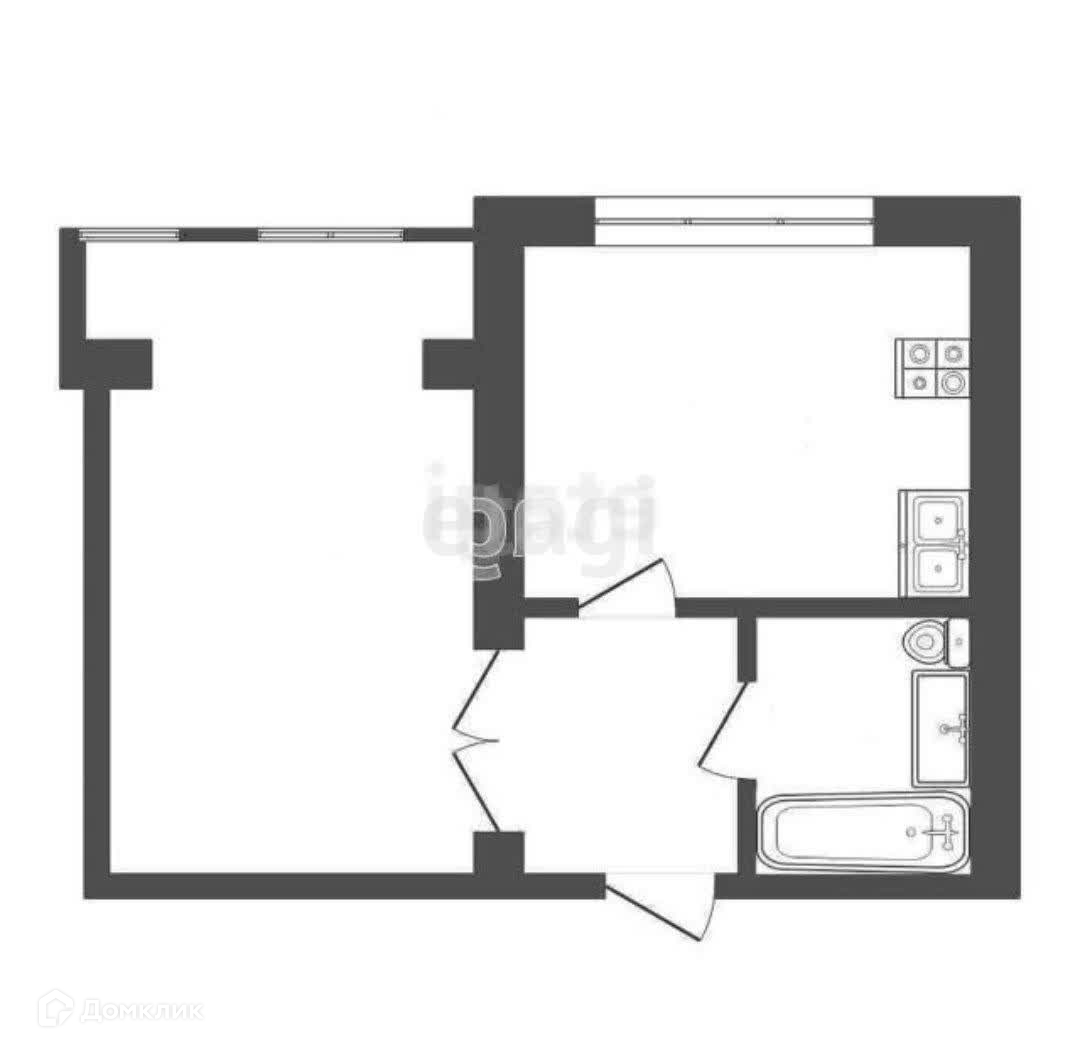 Удобная планировка: просторная комната, удобная кухня с выходом на балкон, совмещённый санузел.