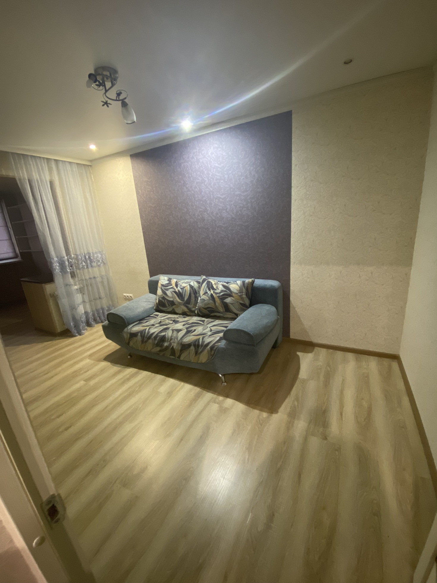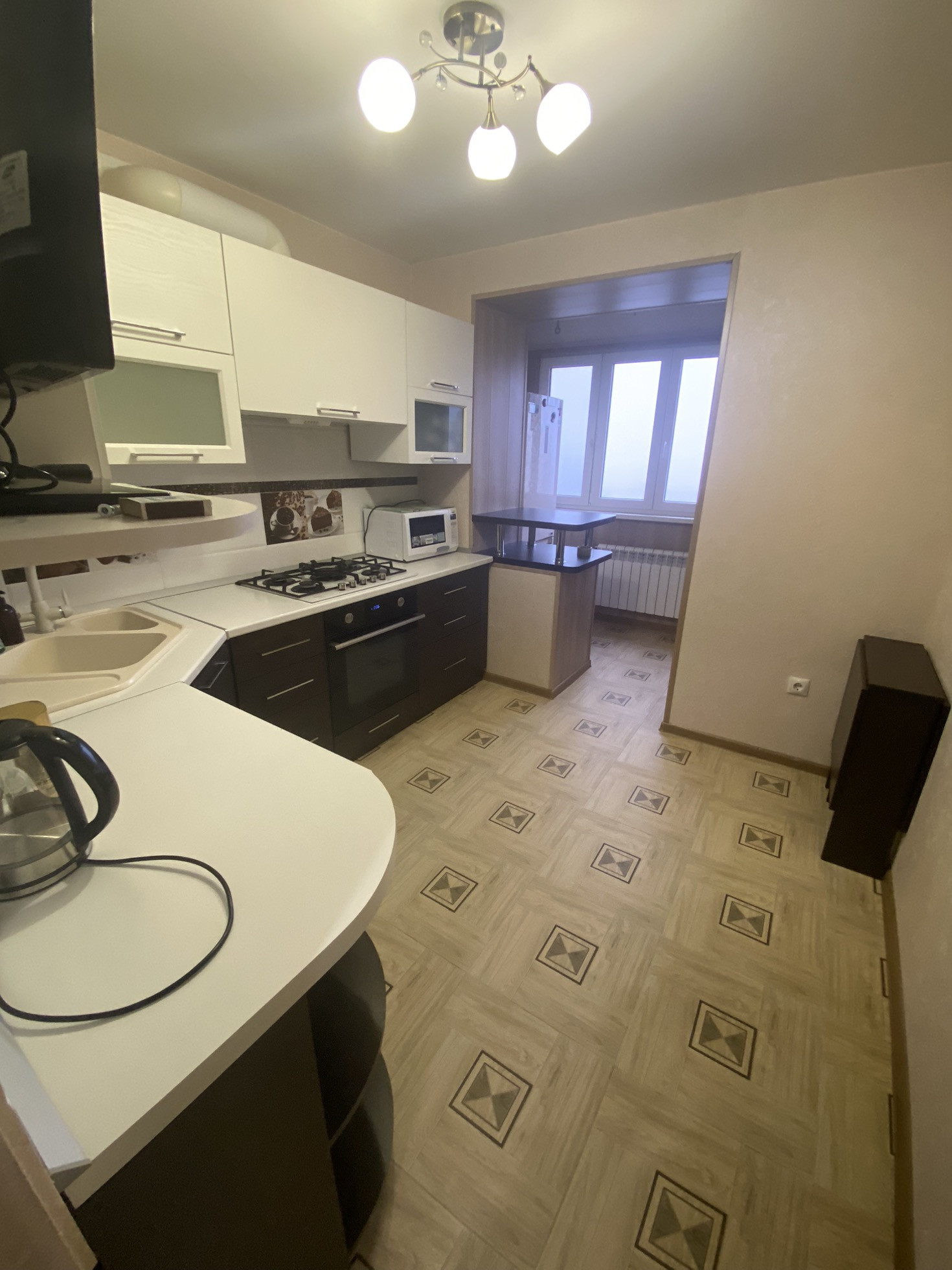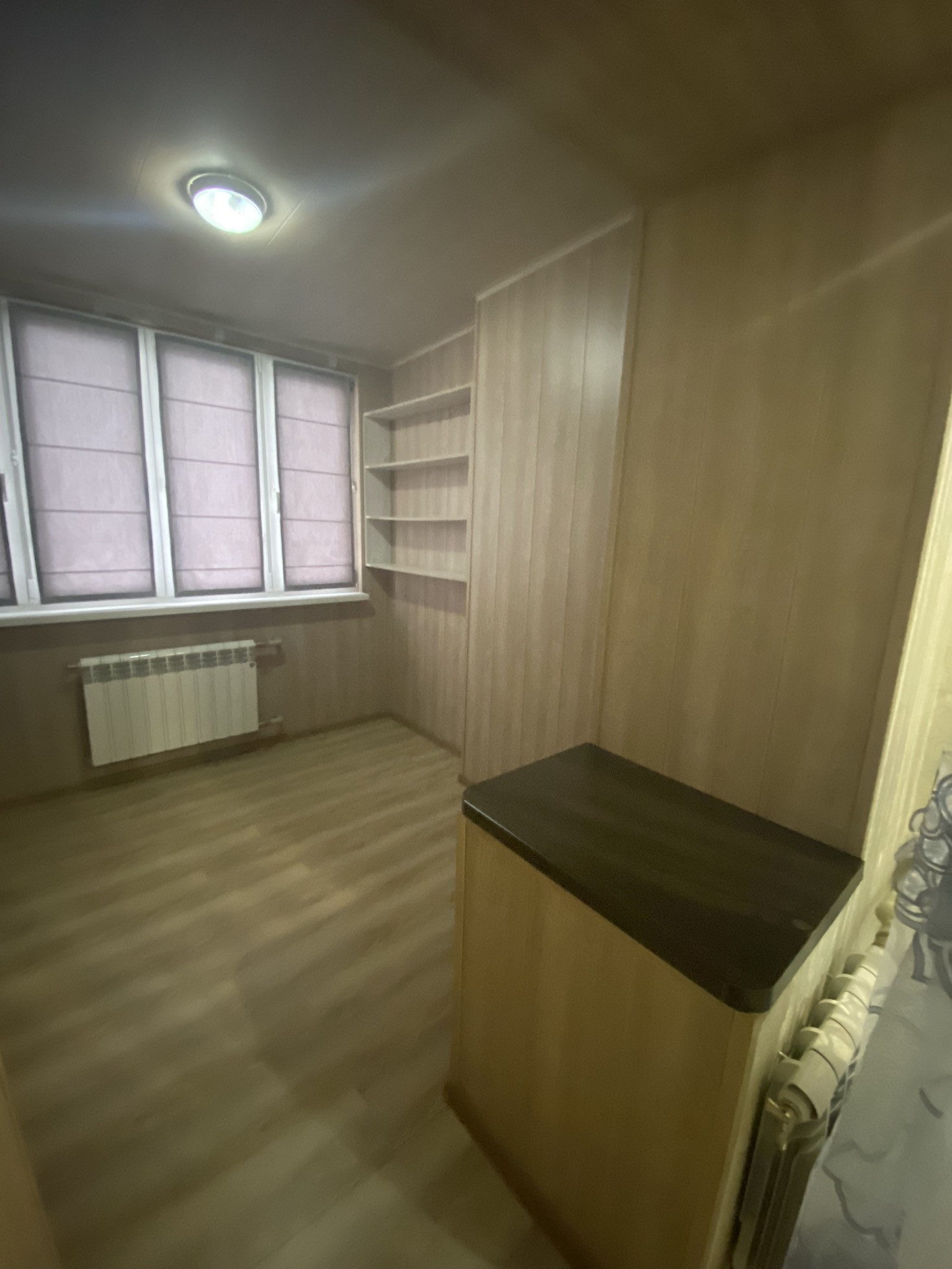 Лоджия расширена , утеплена и сделана под комнату. Балкон расширен, утеплен, застеклен и соединен с кухней.