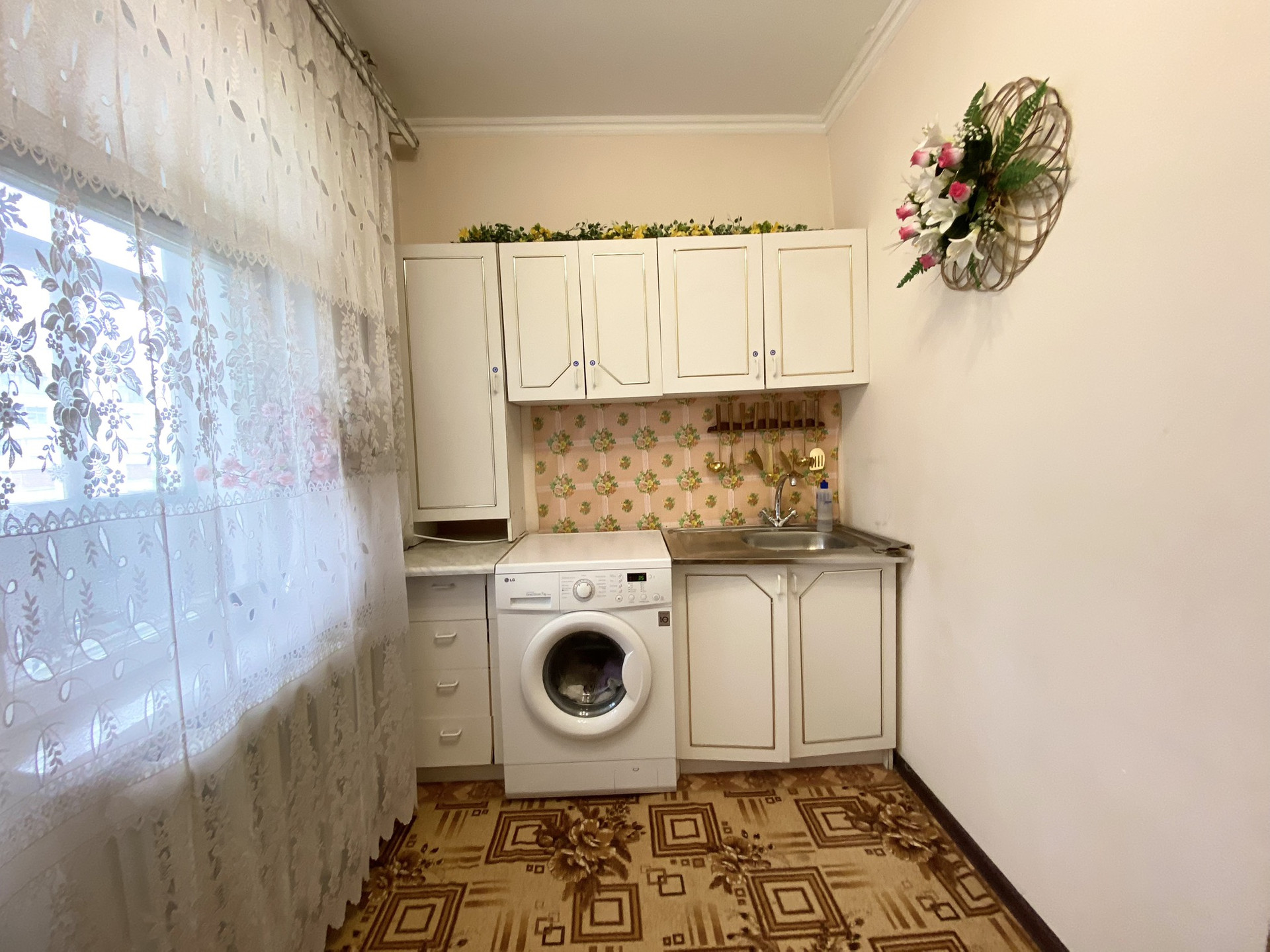 В комнате недавно сделан ремонт и куплена новая мебель. В ванной заменены все трубы на новые пластиковые. Лоджия 11 метров,во всю длину квартиры. На лоджии требуется ремонт. Возможно увеличение кухни, за счет балкона.