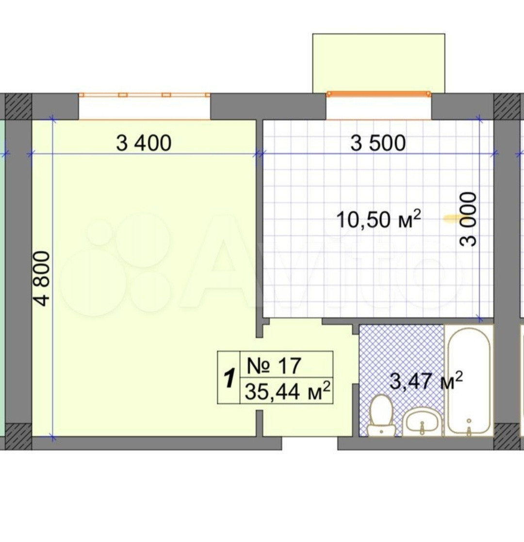 Общая площадь 35.4 м2