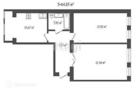 Общая площадь 64.04 м2