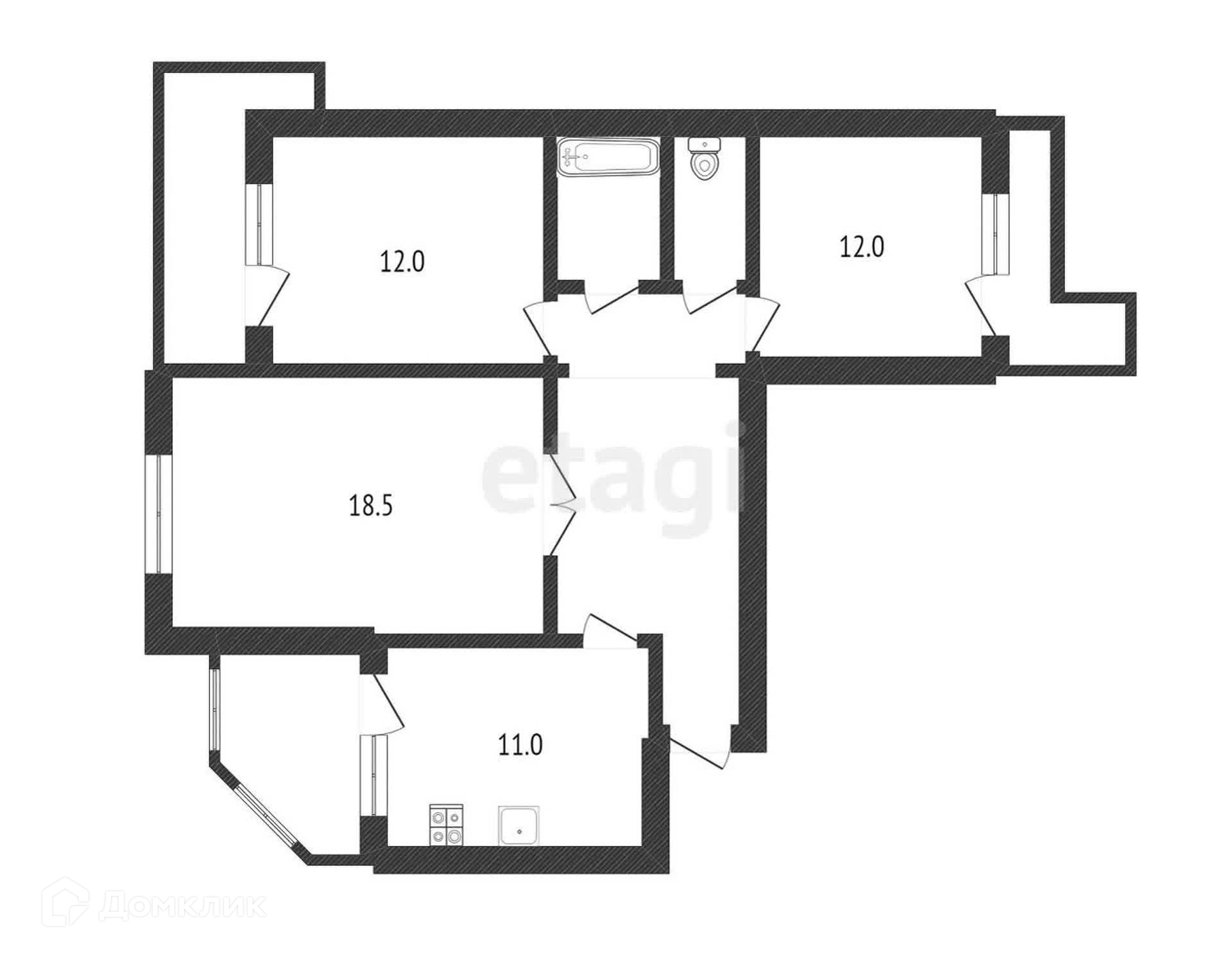 Общая площадь 69.1 м2