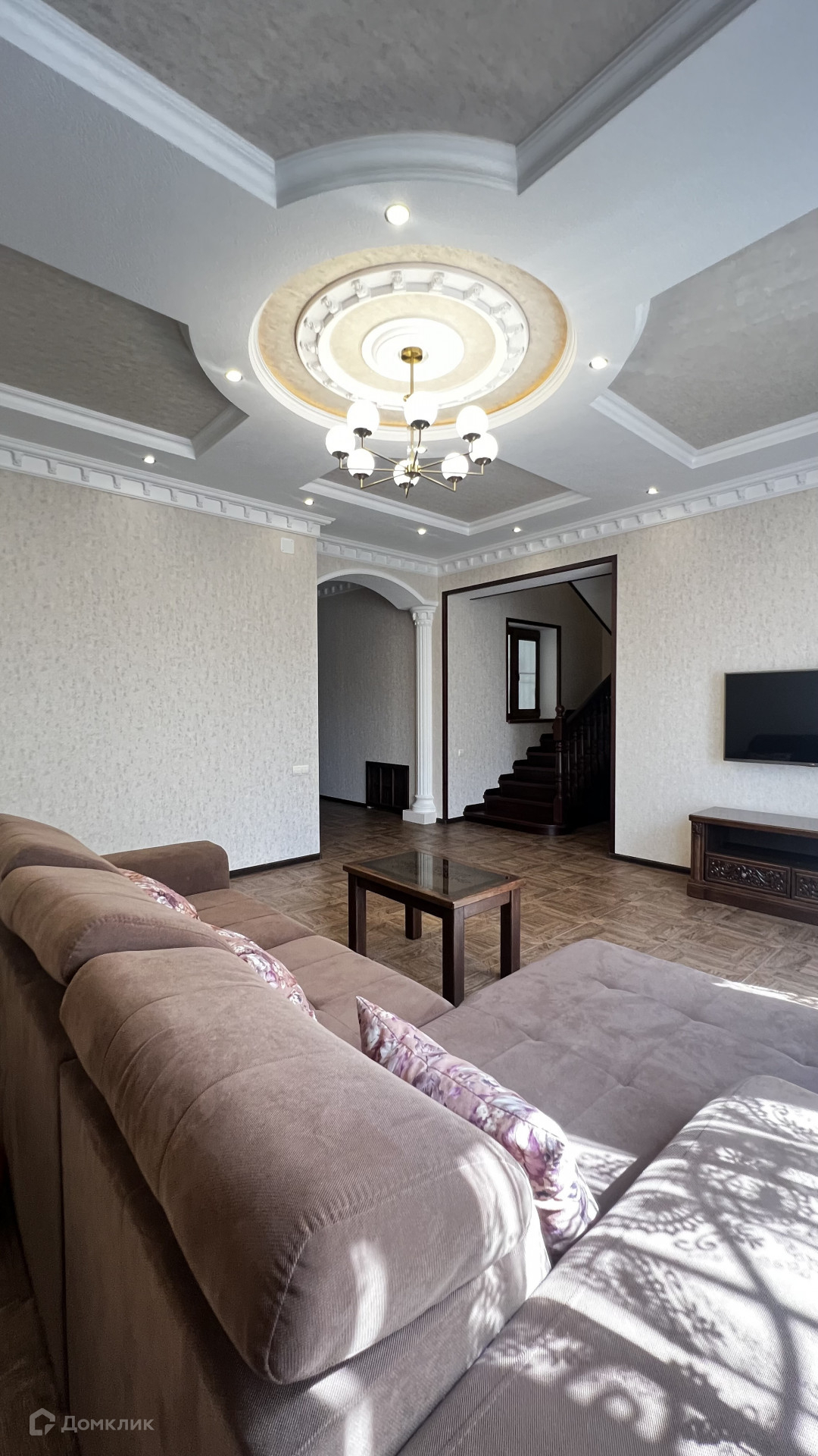 На первом этаже кухня и большая гостиная.