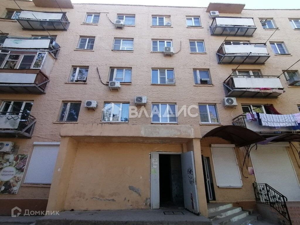 Комната расположена по адресу: Россия, Астраханская область, Нариманов, Астраханская улица, 10. Это панельный дом с железобетонными перекрытиями, построенный в 1981 году. Третий этаж пятиэтажного кирпичного дома без лифта.