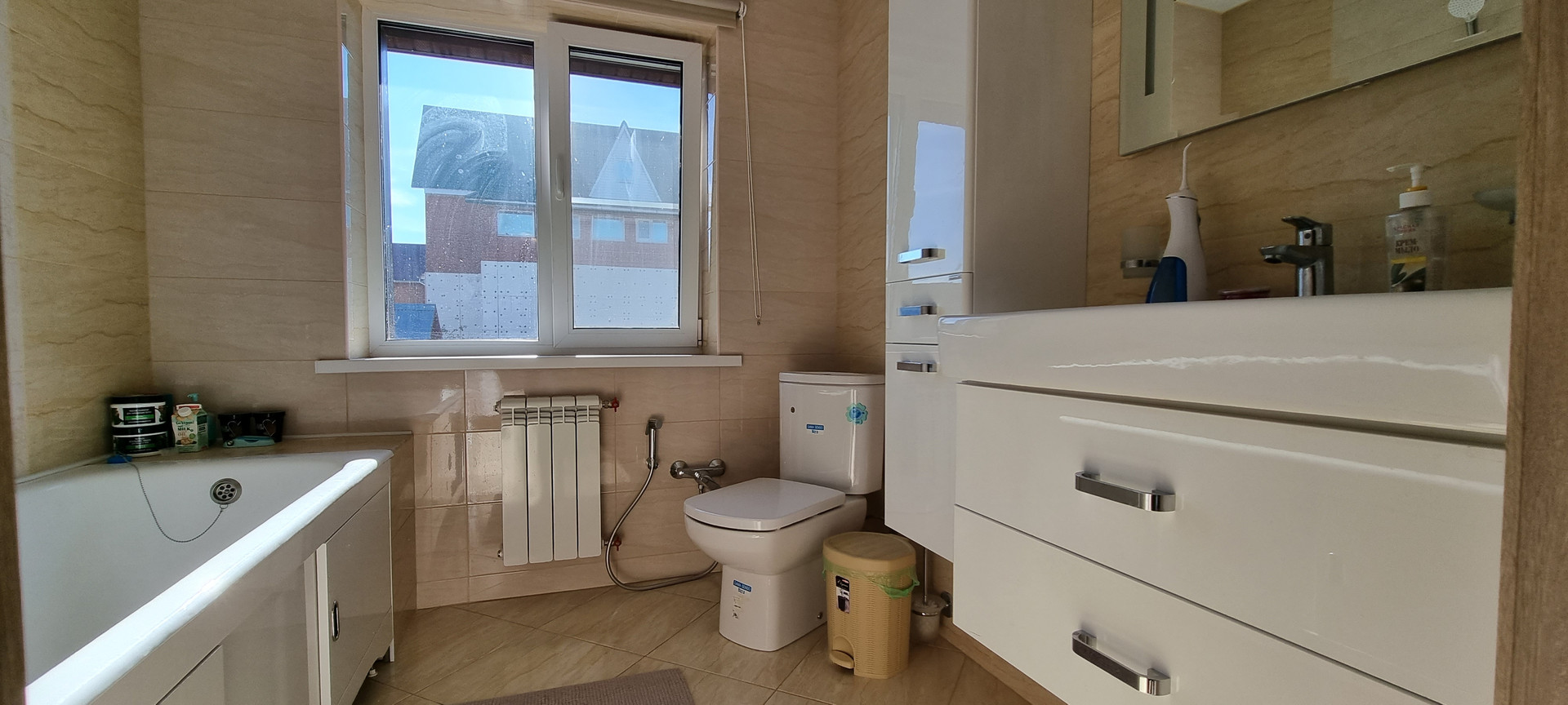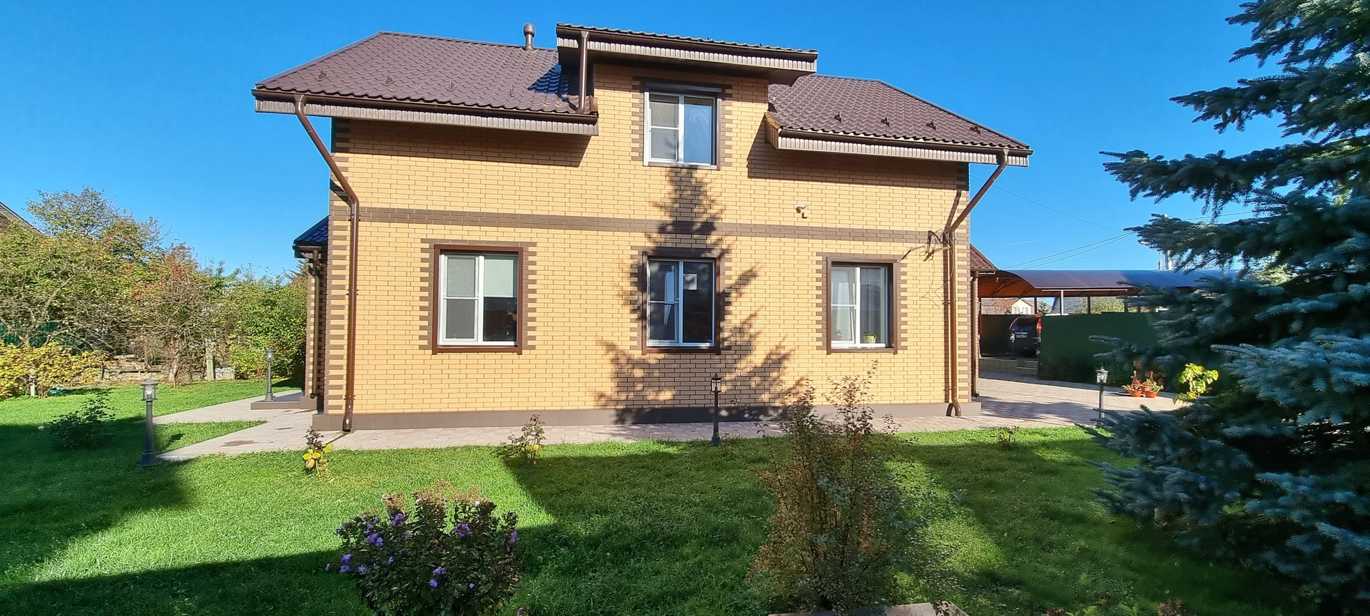 Дом построен в 2018 году. Материал конструкции: газобетонный блок (бонолит D - 500) + утеплитель роквул 100мм. + облицовочный кирпич. Фундамент: плита. Кровля: металлочерепица, утеплена 200мм. Окана: ПВХ. Канализация: септик "Топаз" на 8-10 человек. Вода: скважина 60 метров (вода хорошая, мягкая, стоит система водоочистки). Газ магистральный. Электричество 15 кВт. По всему первому этажу теплый пол. В доме установлено видеонаблюдение благодаря которому вы сможете наблюдать, где бы вы не находились, за обстановкой в доме. Межэтажное перекрытие бетонное.
