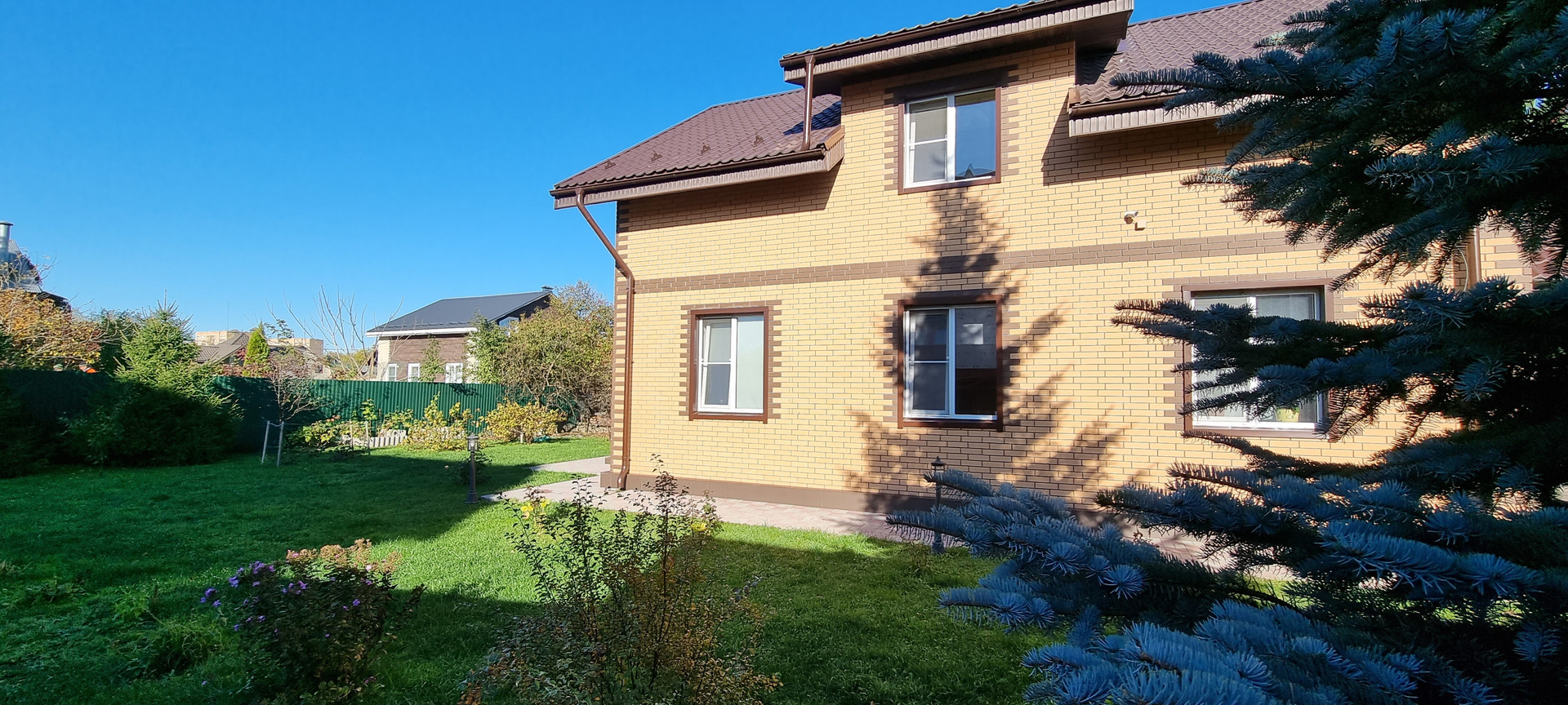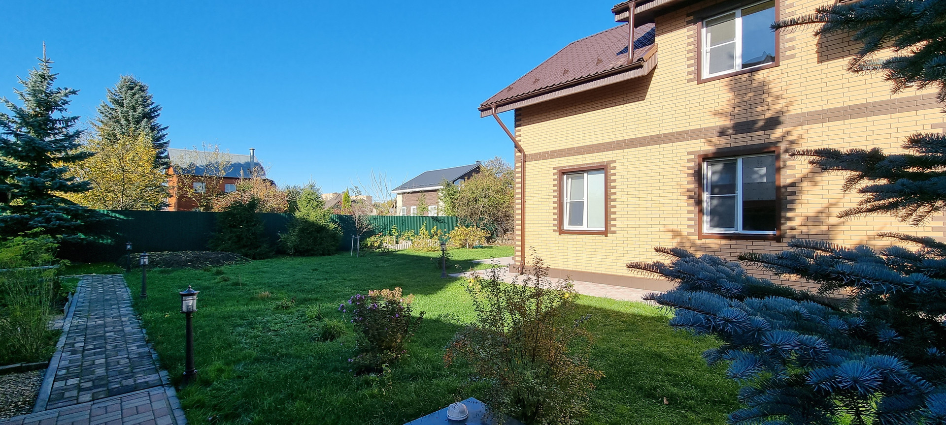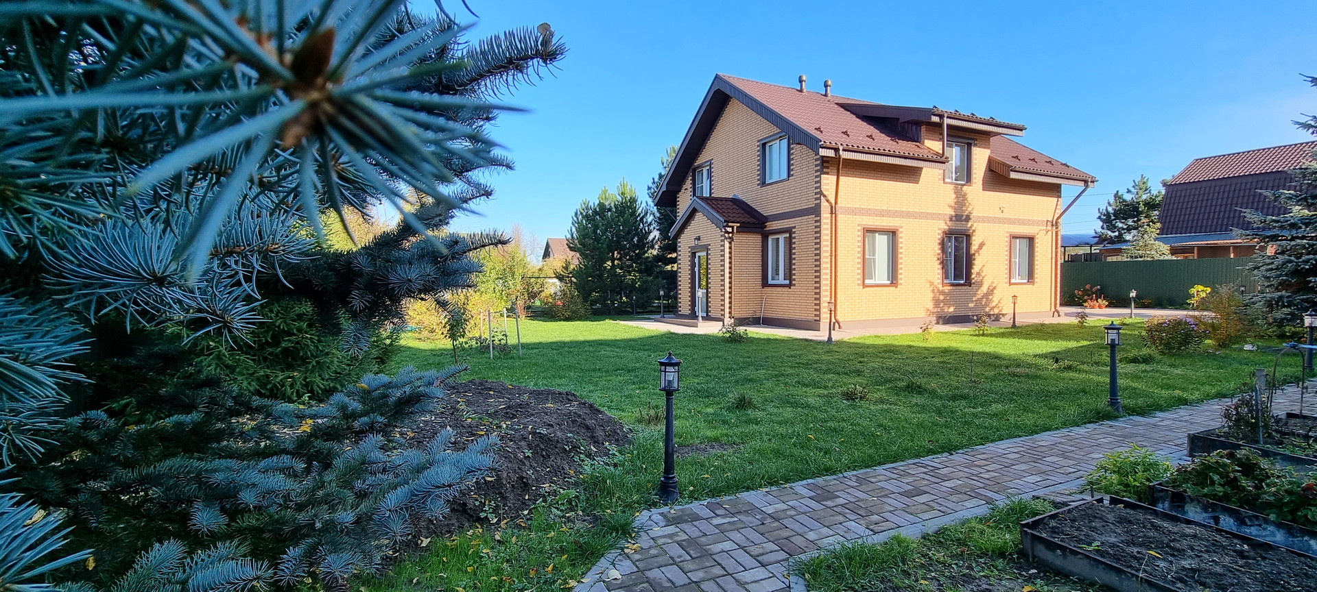 Участок 10 соток, ровный правильной формы, сделана дренажная система, освещение всей территории, плодово-ягодные культуры (яблоки, груши, смородина, жимолость), забор из профлиста, установлены автоматические ворота на въезде. Баня в окружении голубых елей.