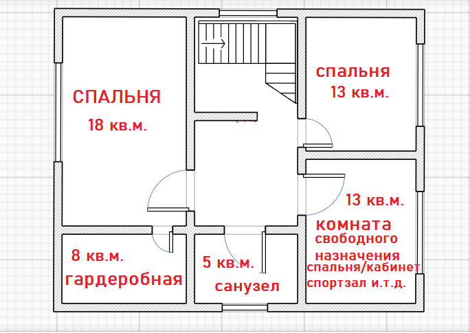 2-этаж: две спальни, комната свободного назначения (кабинет, спальня, спортзал и.т.д.), санузел, большая гардеробная.