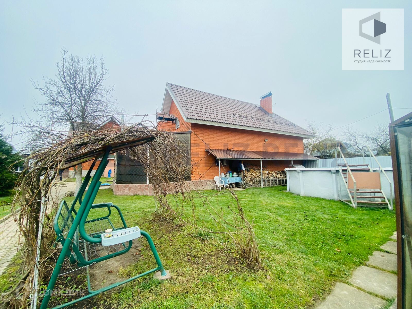 На участке беседка и бассейн.