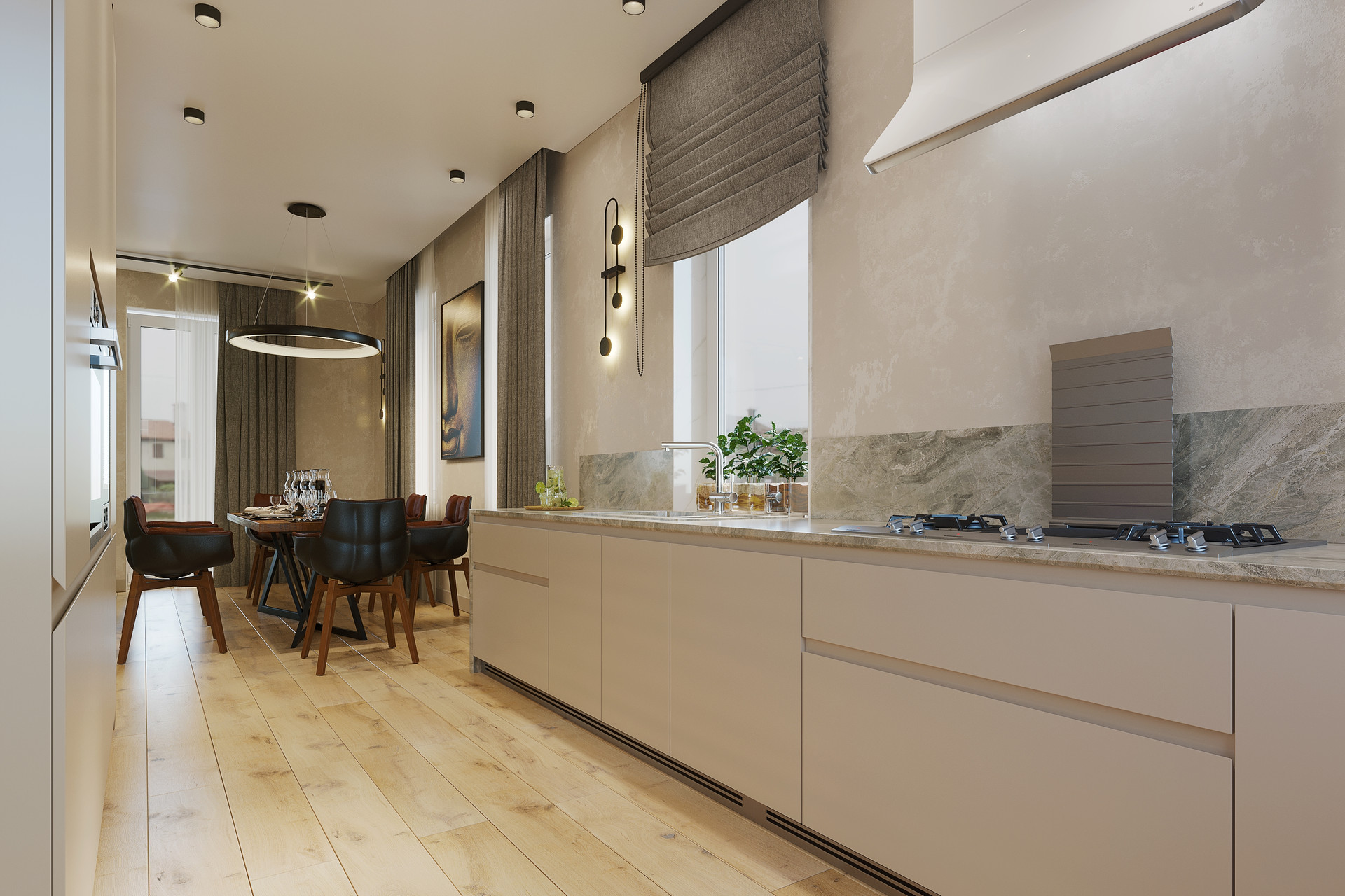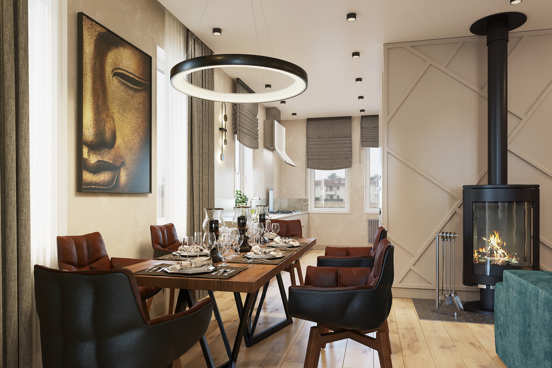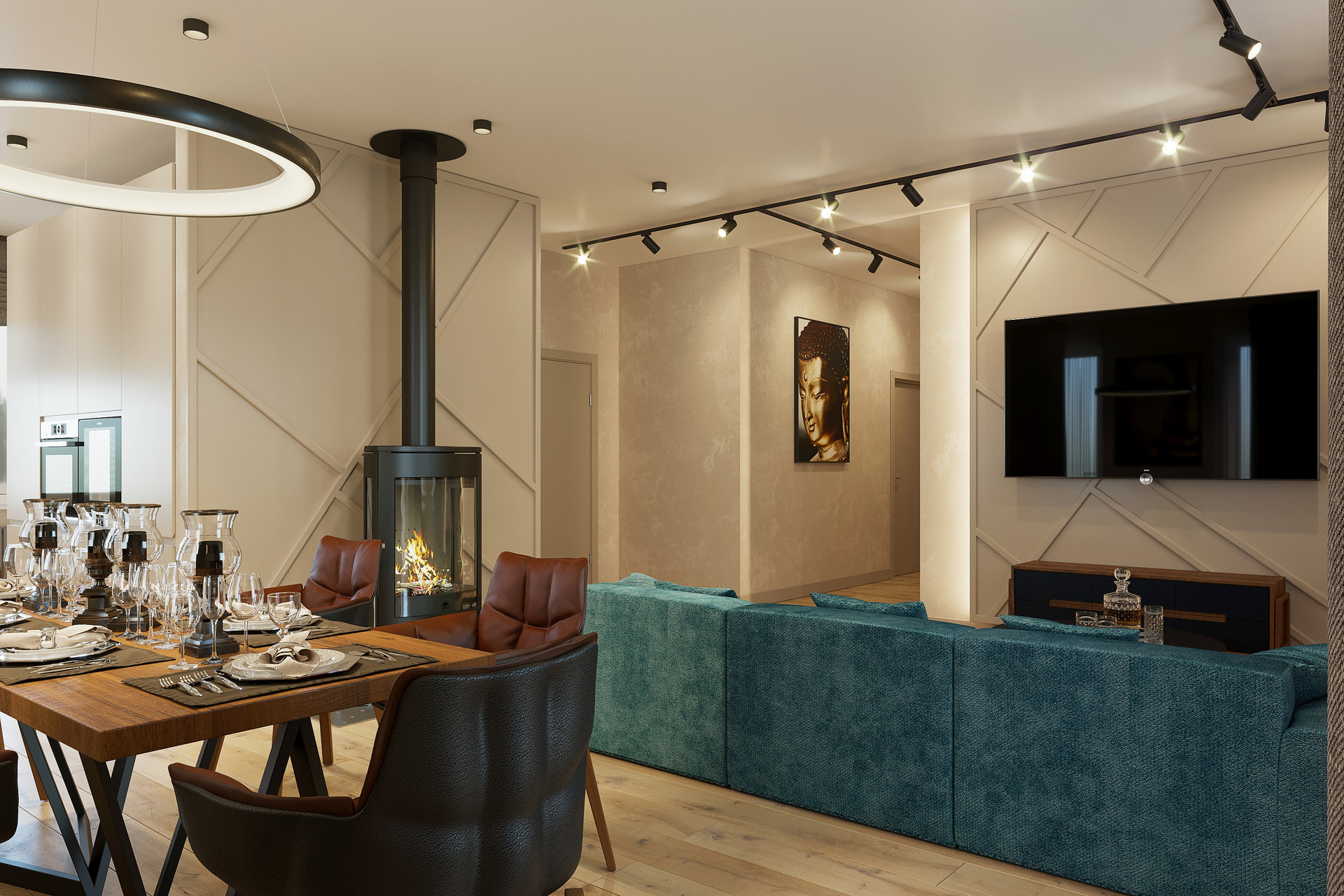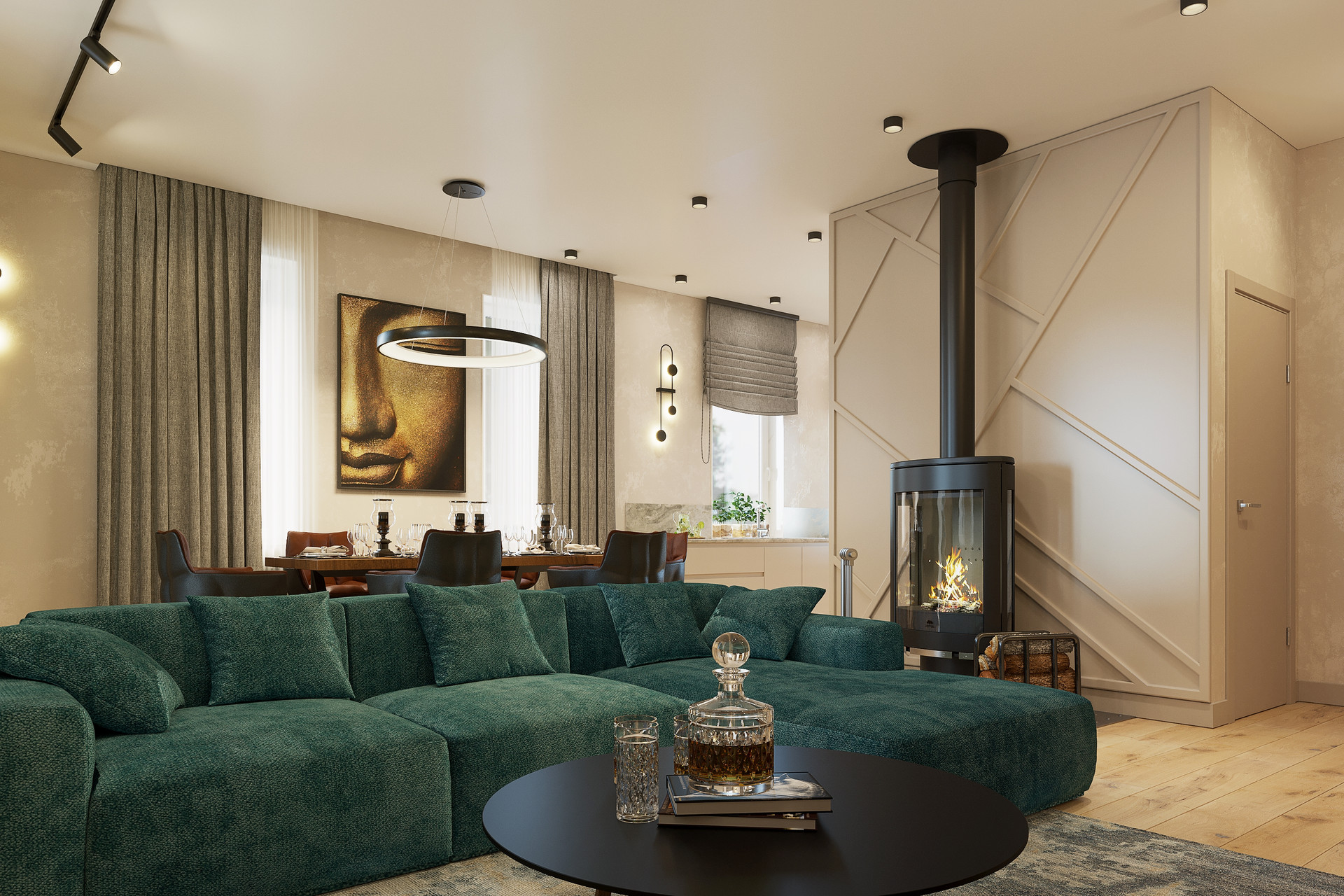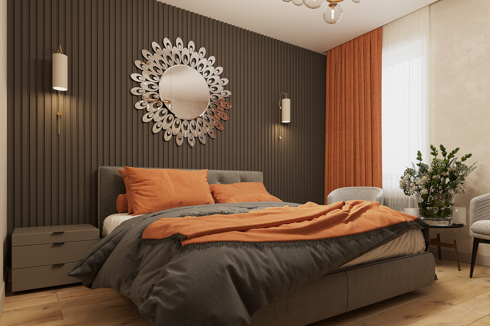 Функциональная планировка: три спальни, кухня-гостиная, гостевой с/у, основной с/у, гардеробная, прихожая, котельная, мансардный этаж, терраса