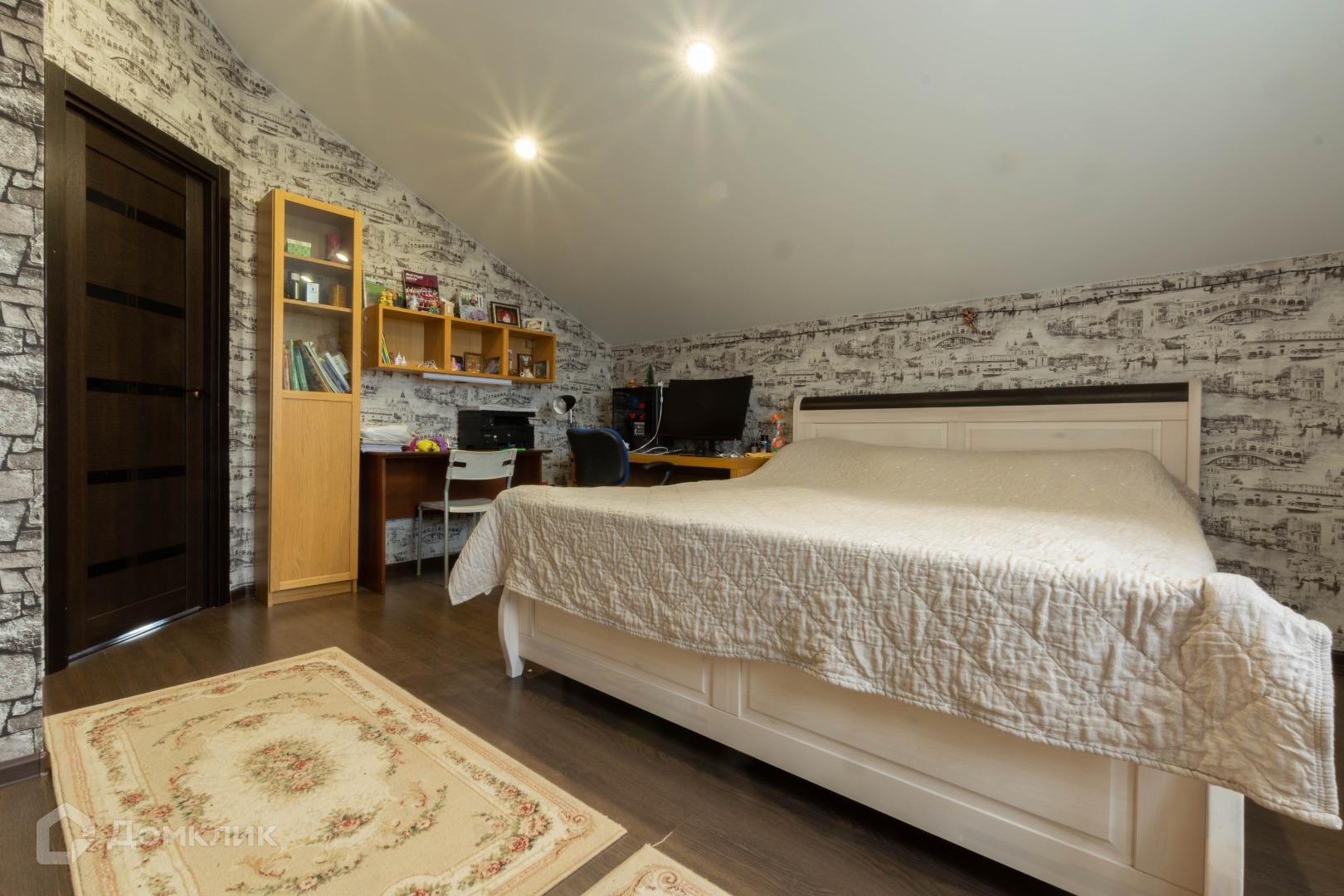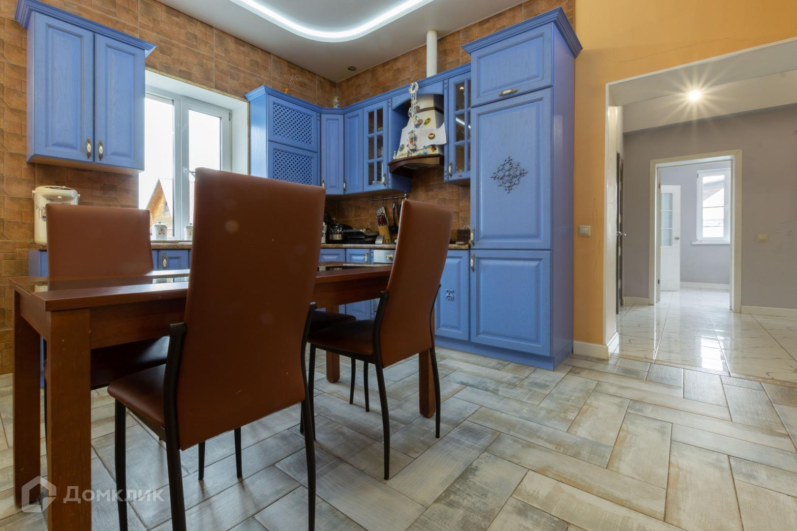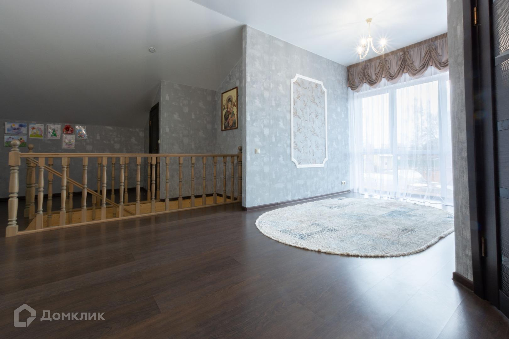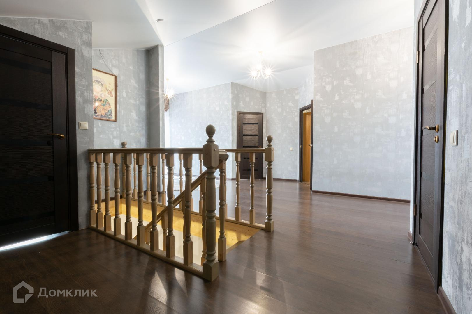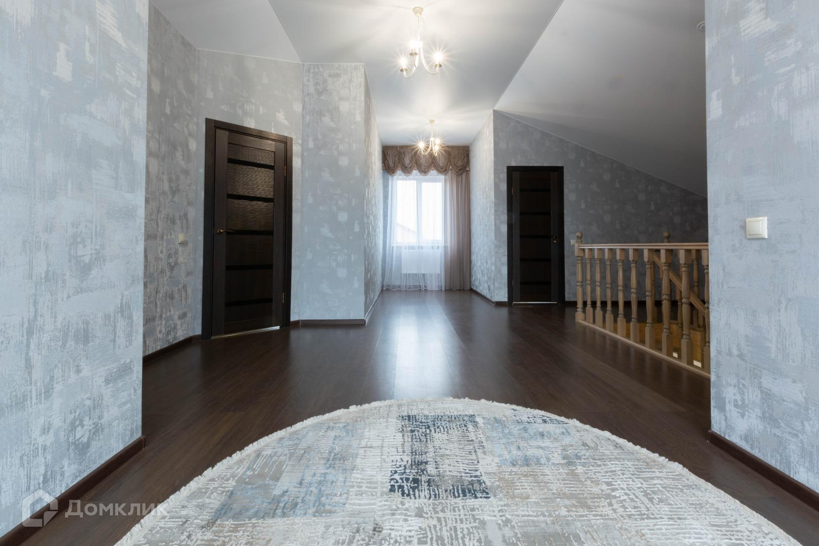 Полы в жилых помещениях и в холле-ламинат, остльное-плитка. Потолки-натяжные. Местами точечные светильники. Дом требует косметики.