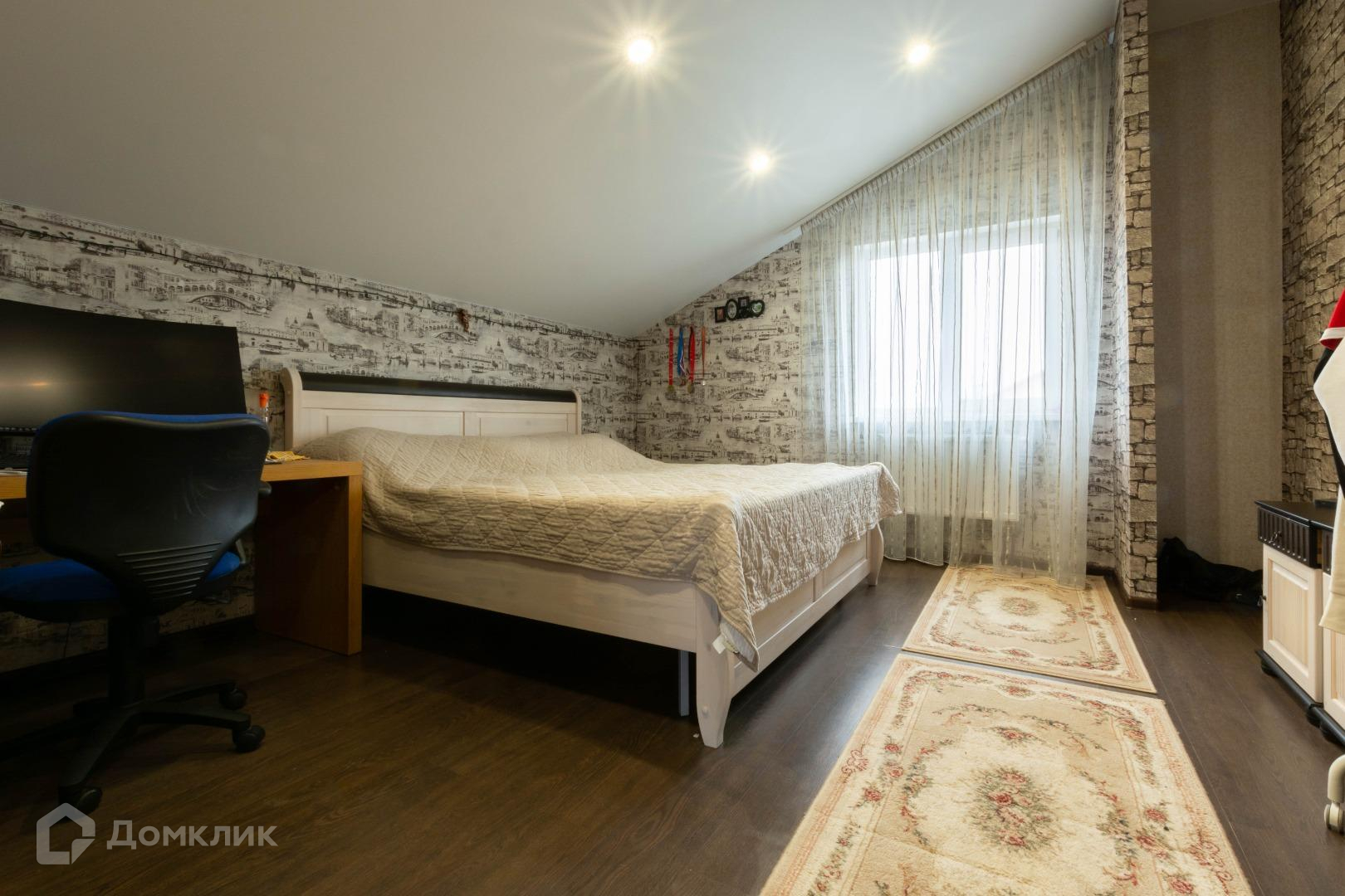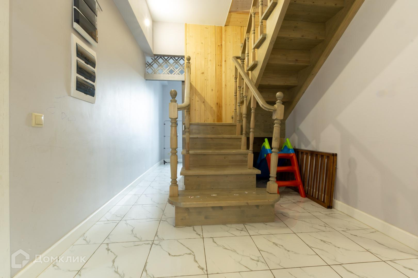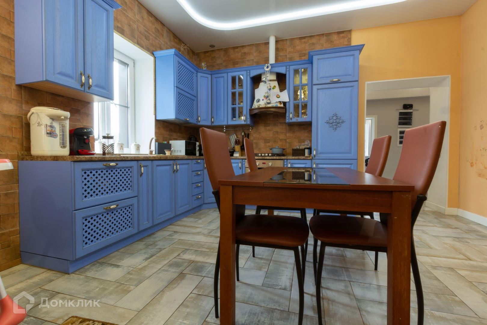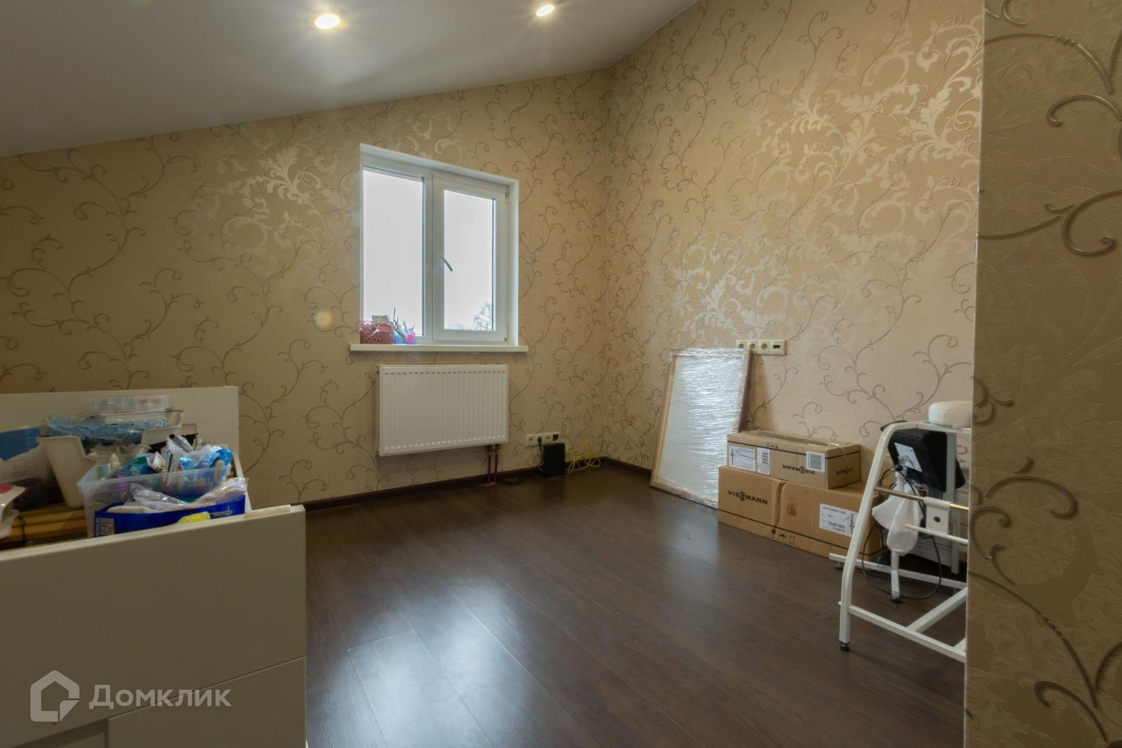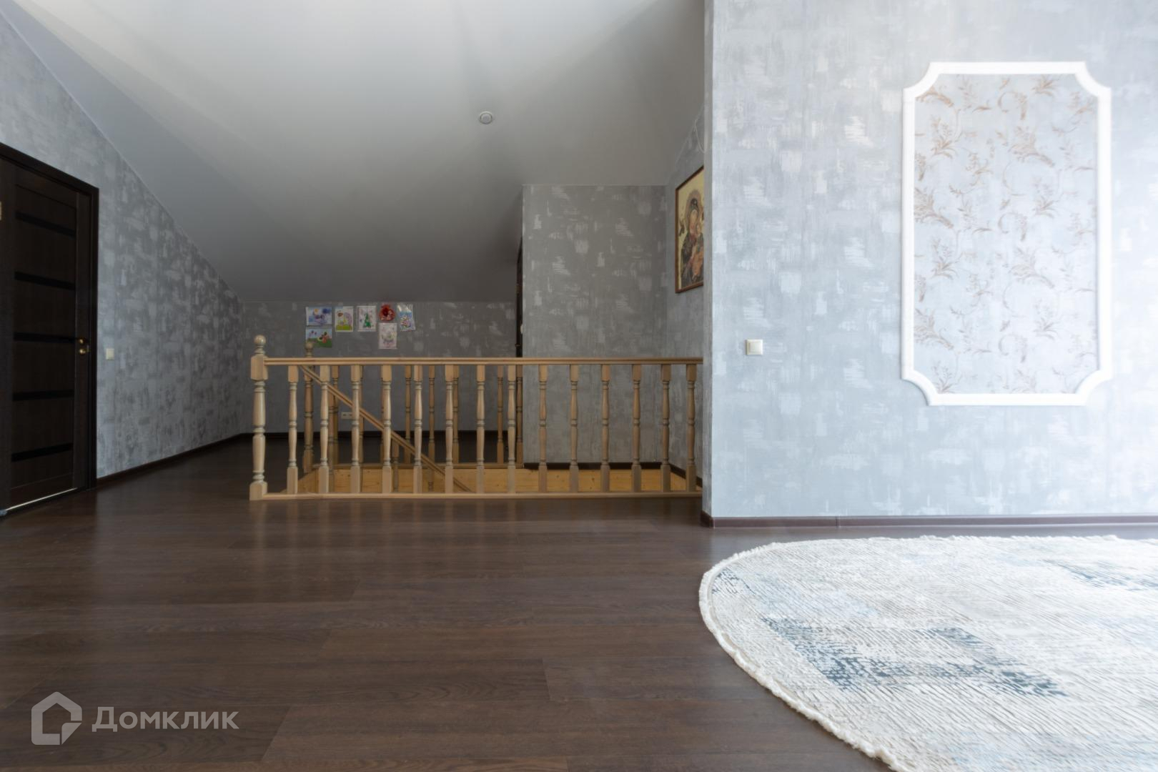 Полы в жилых помещениях и в холле-ламинат, остльное-плитка. Потолки-натяжные. Местами точечные светильники. Дом требует косметики.