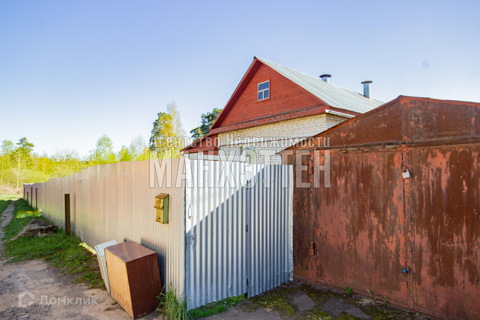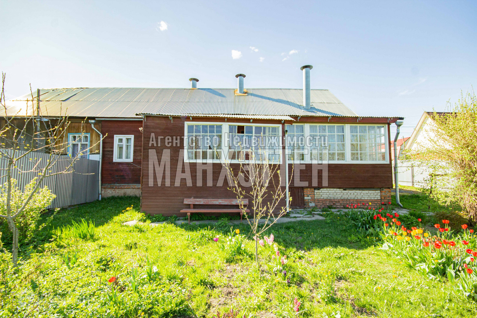 Дом облицован кирпичом и вагонкой;