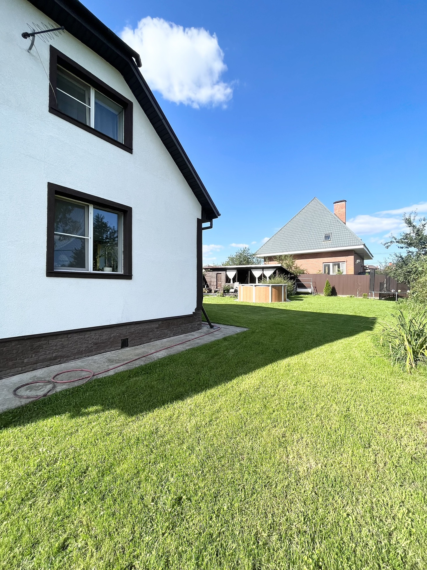 Откатные ворота. Имеется хоз блок с подведенными коммуникациями, веранда с зоной барбекю.