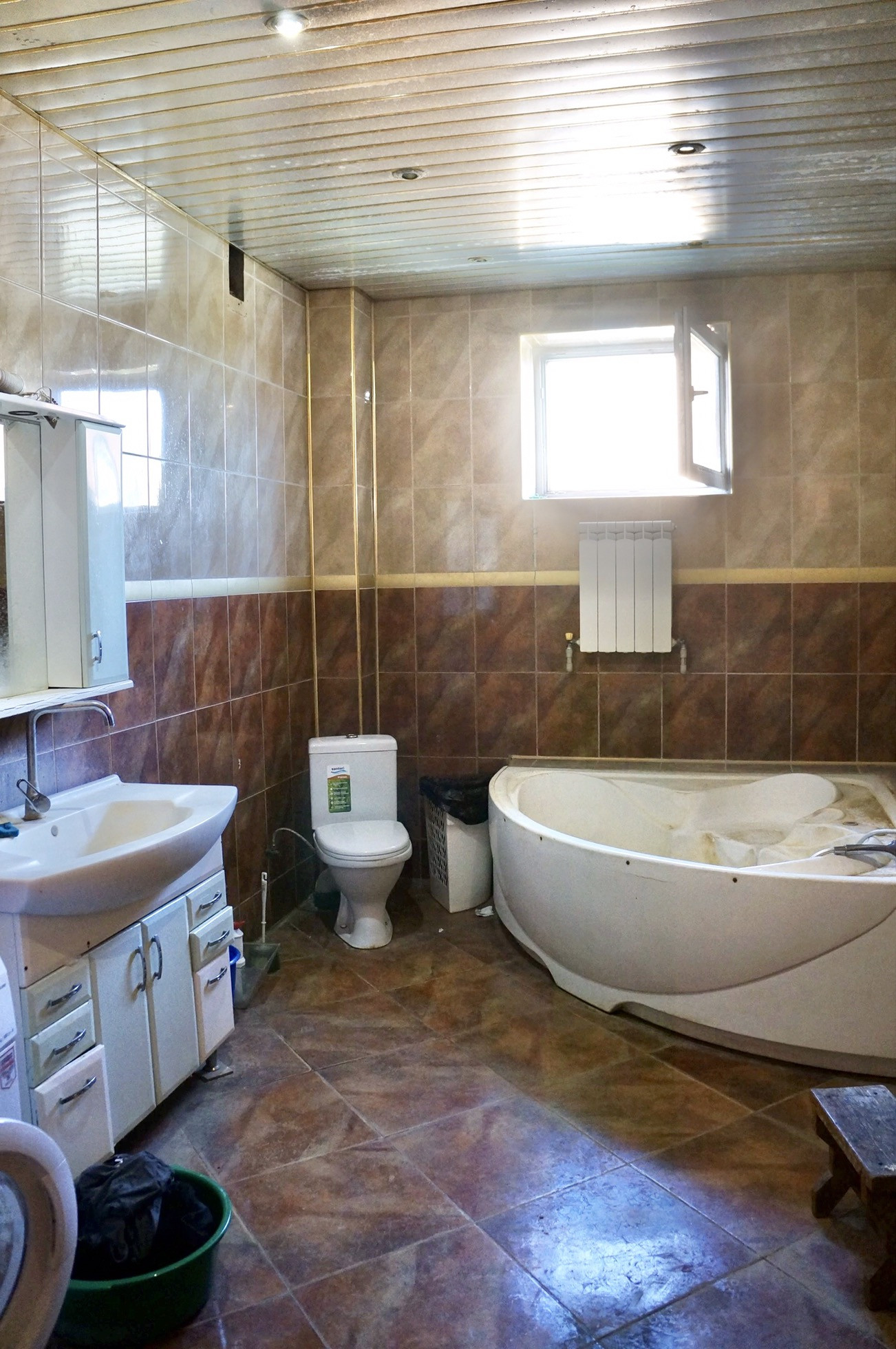 1й этаж: гостиная, кухня, гараж, большой санузел с ванной, котельная