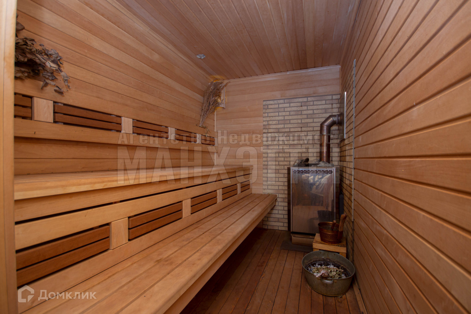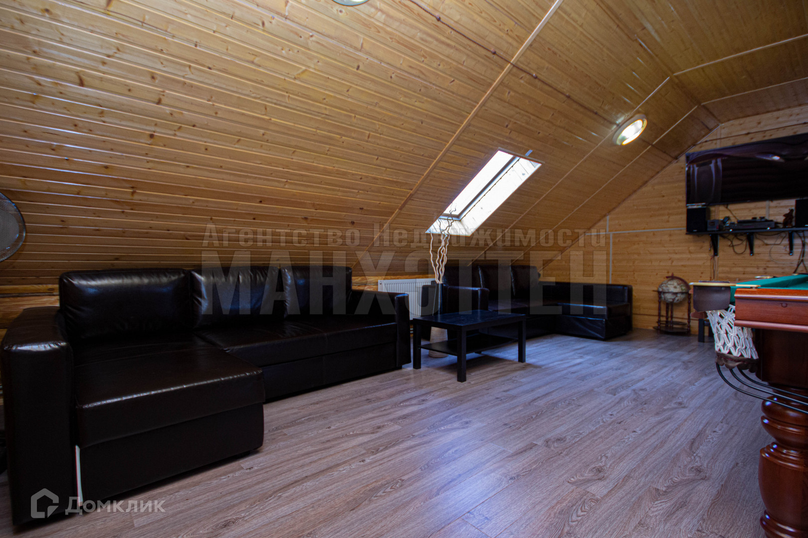 гостевой дом построен из оцилиндрованного бревна. В доме 2 этажа, на 1 этаже расположены: сауна, купель, гостиная с русской печкой, гостевая комната, с/у, 2 этаж - мансардный, где расположена бильярдная комната с выходом на балкон. Дом полностью подходит для постоянного проживания: газовое отопление, водоснабжение и канализация - центральные.
