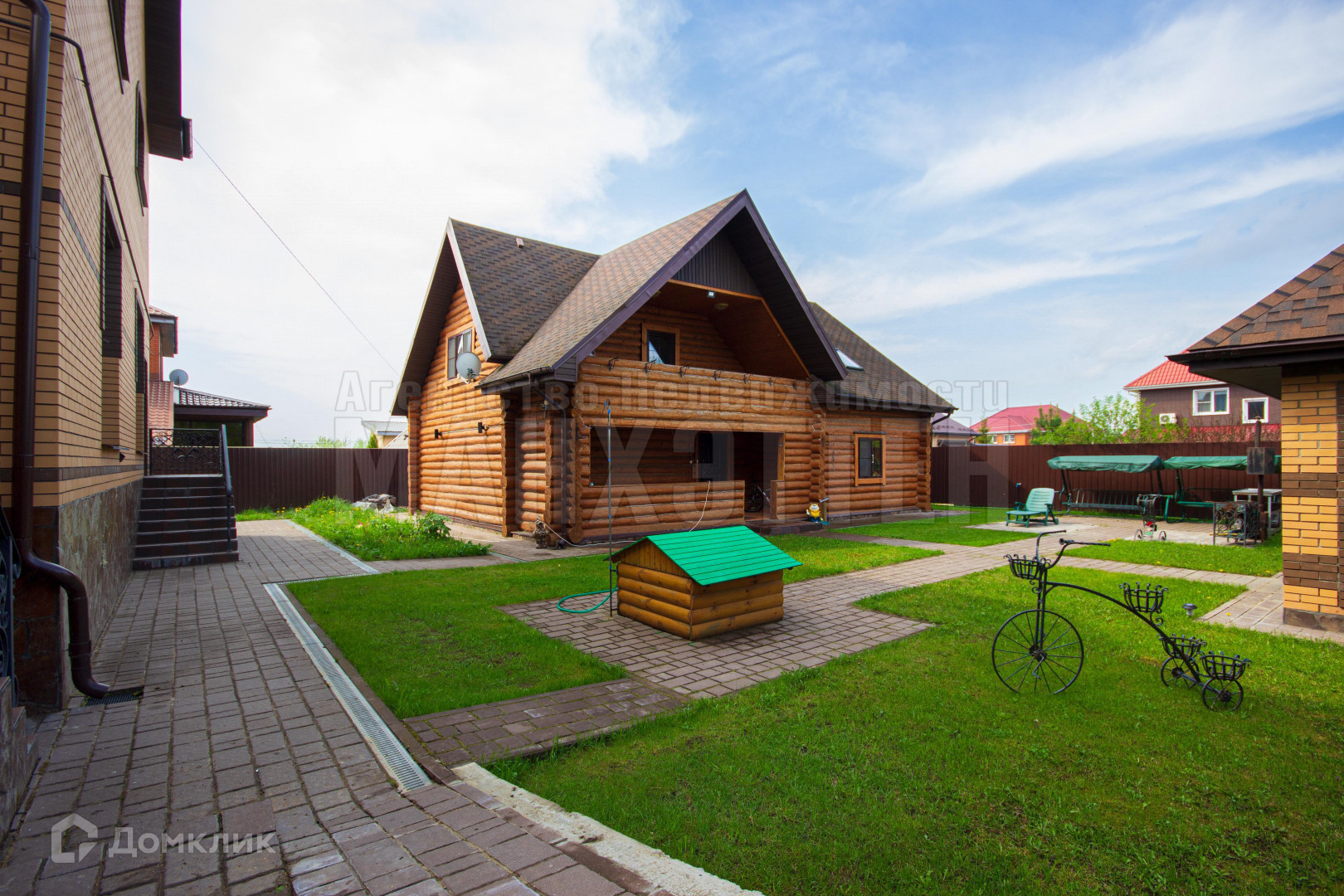 по всему участку плитка и газон;