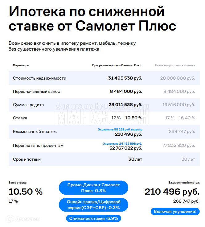 Арт. 63830074 Данный объект можно купить по субсидированной процентной ставке от 10,5%, что существенно снизит ежемесячный платеж по ипотеке!!! Расчет прилагается на последнем фото.