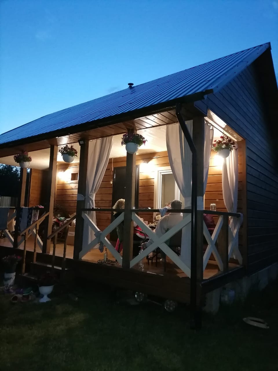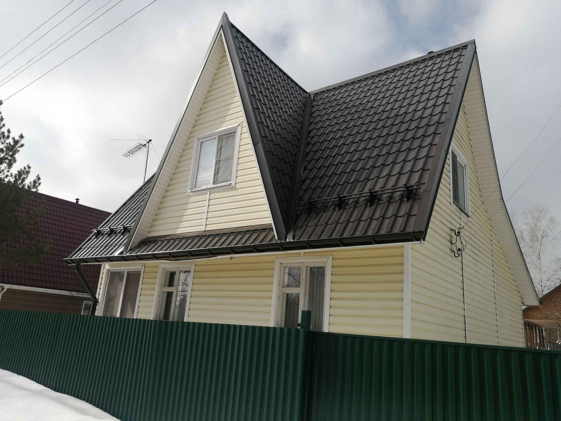 Дом: общая площадь 90 кв.м., фундамент ленточный, материал стен брус 150х150, утеплен, обшит сайдингом, крыша - металлочерепица.