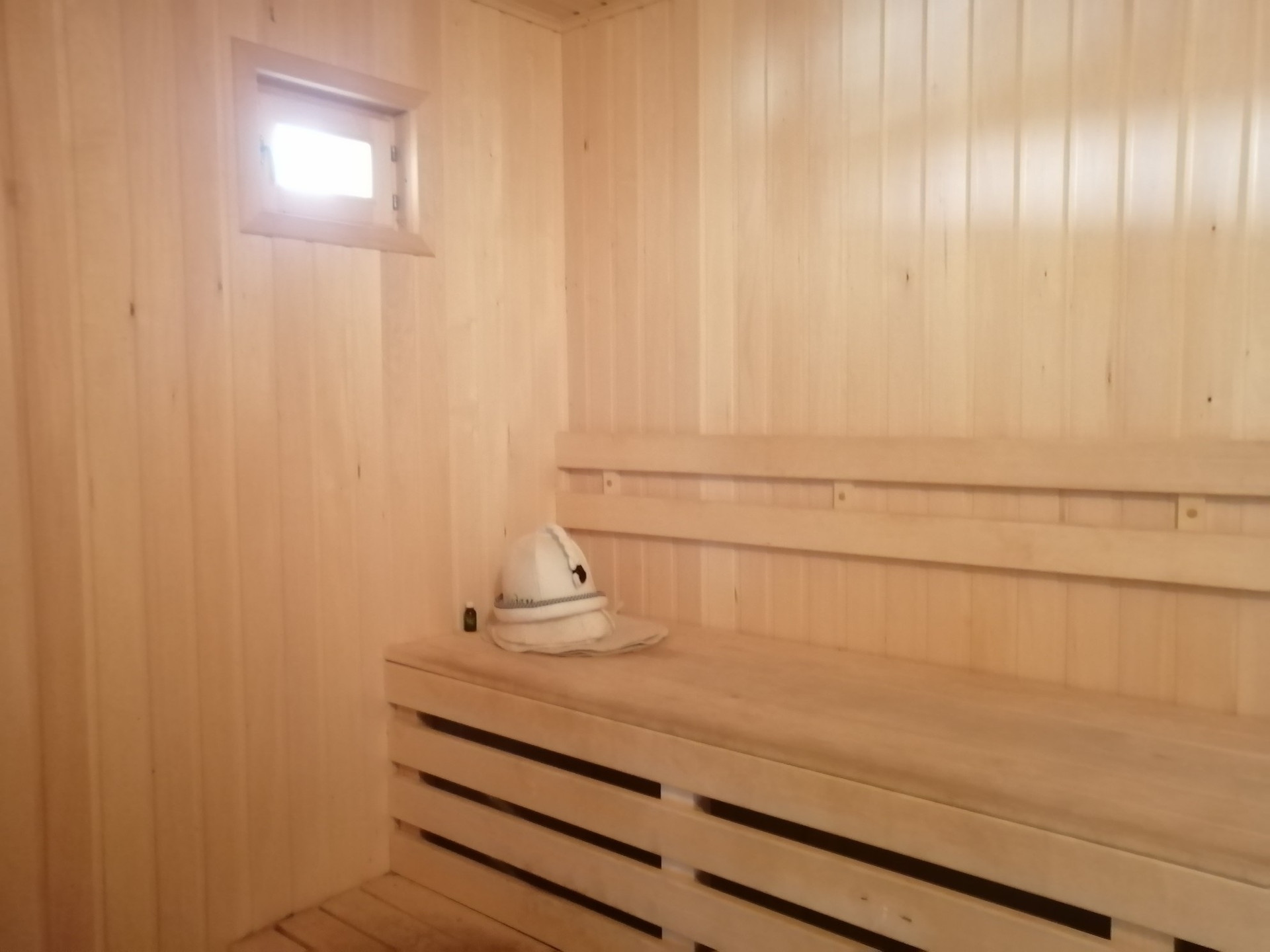 На участке баня (6х8), по индивидуальному проекту: фундамент ленточный; с открытой терассой шириной 2 метра, которая выполняет функцию беседки; комната отдыха (спальное место для гостей), раздевалка, душевая, парная (отделана липой). Торфяной биотуалет. Дровник.