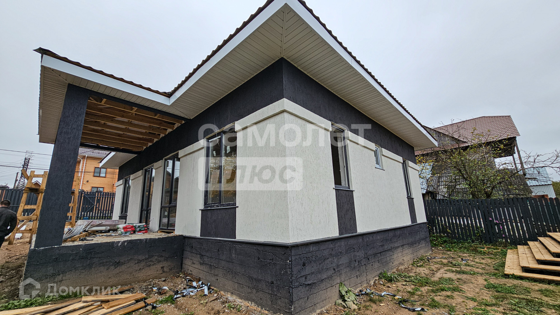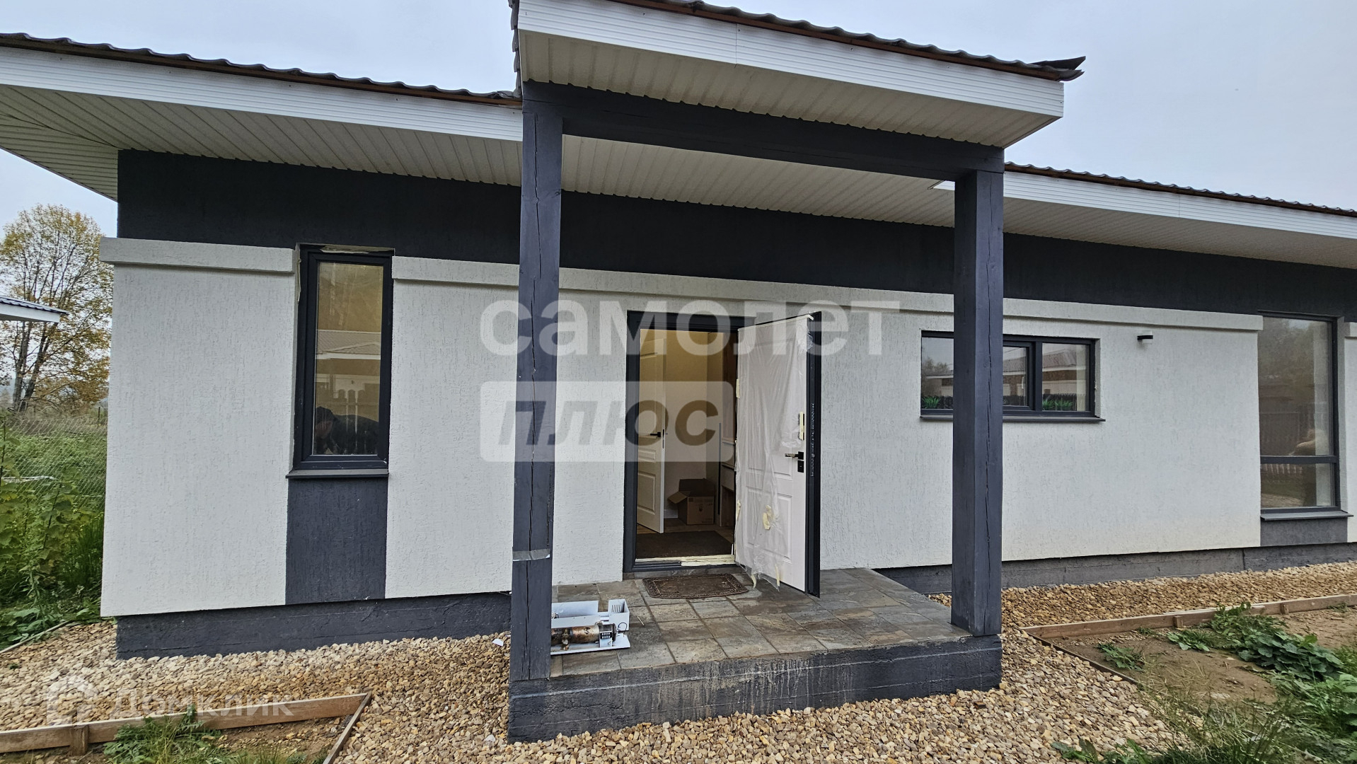 Внутри дома три просторные комнаты, кухня-гостиная, два санузла и техническое помещение.Коммуникации: вода и газ по границе участка, электричество 15 кВт.Участок размером 5 соток, на нем уже есть постройка, которую можно легко переоборудовать под баню или другую хозяйственную нужду.