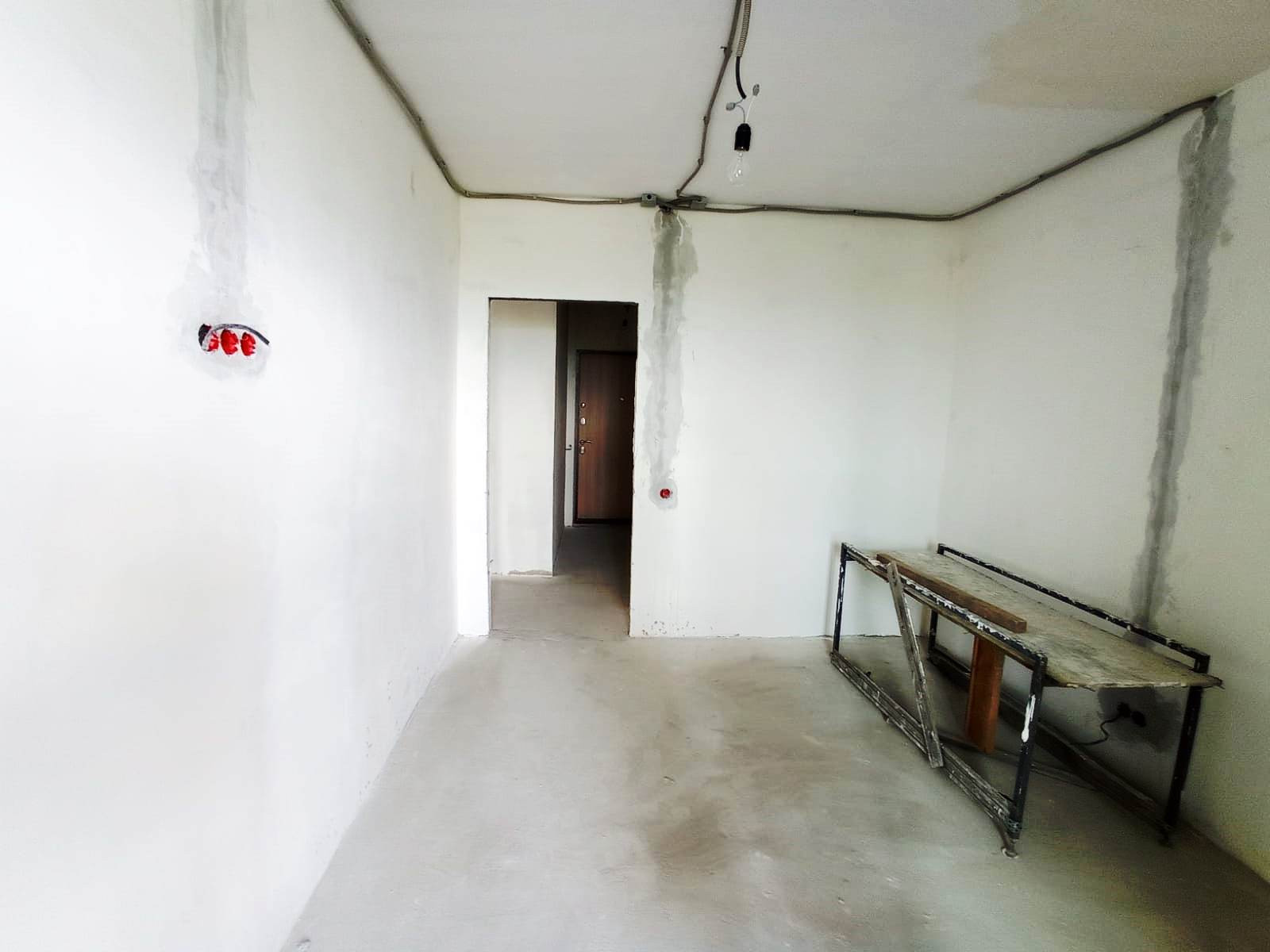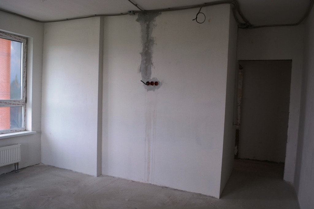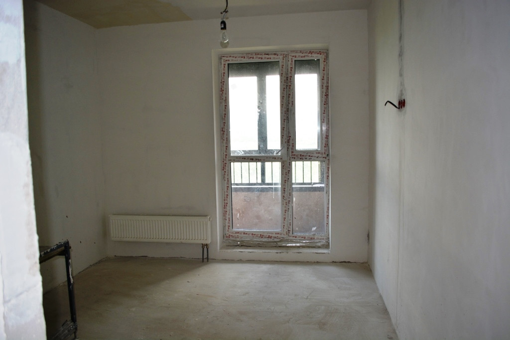 Состояние White box : проведены все коммуникации, установлены радиаторы и выполнены все черновые работы (стяжка на полу, а стены и потолок отшпатлеваны и выровнены ).