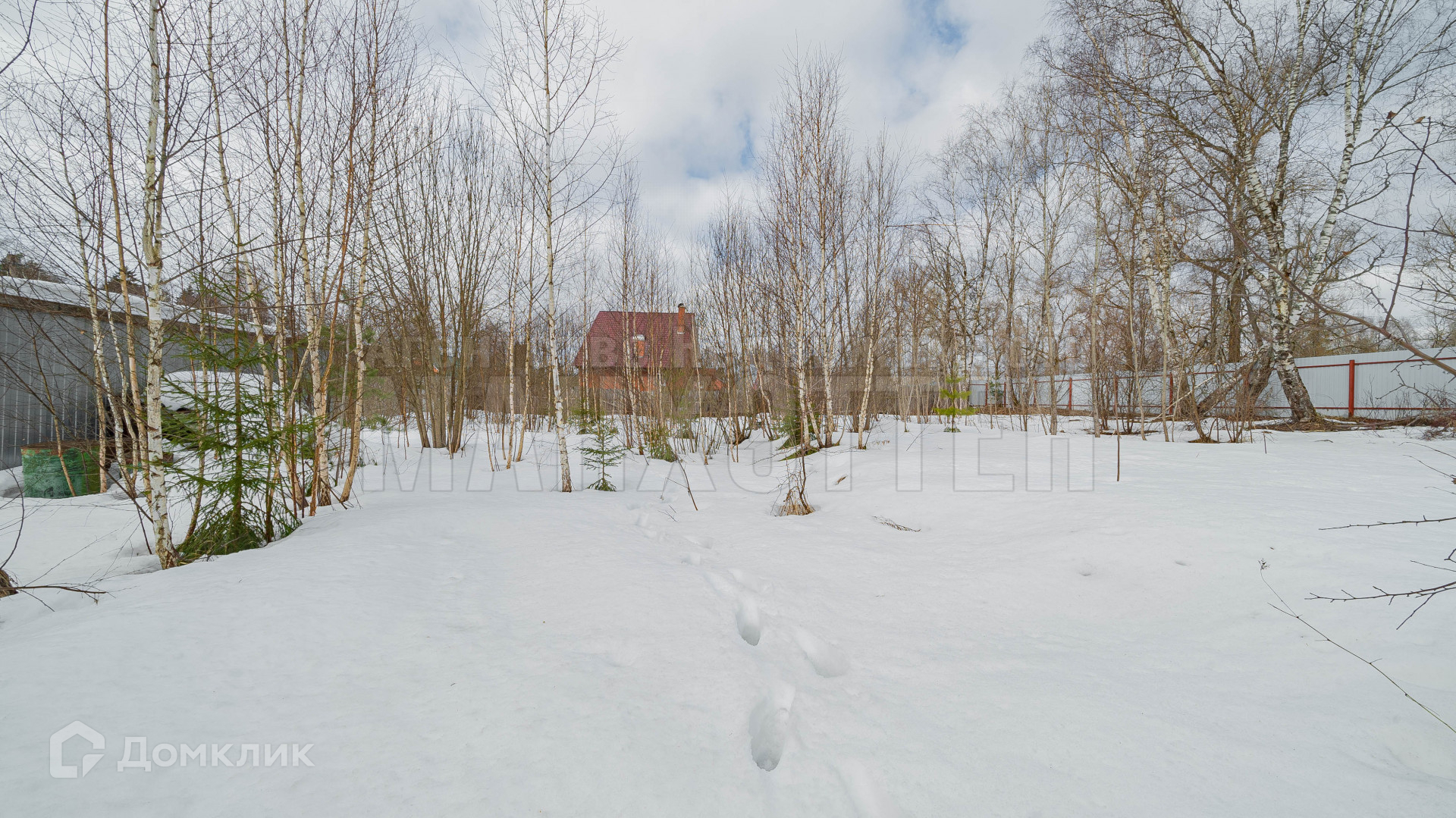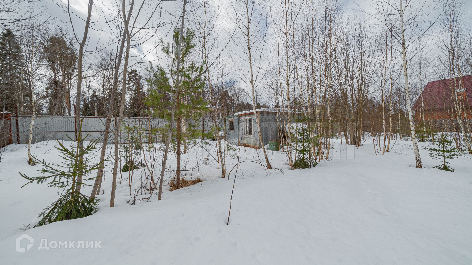 Огорожен металлопрофилем.