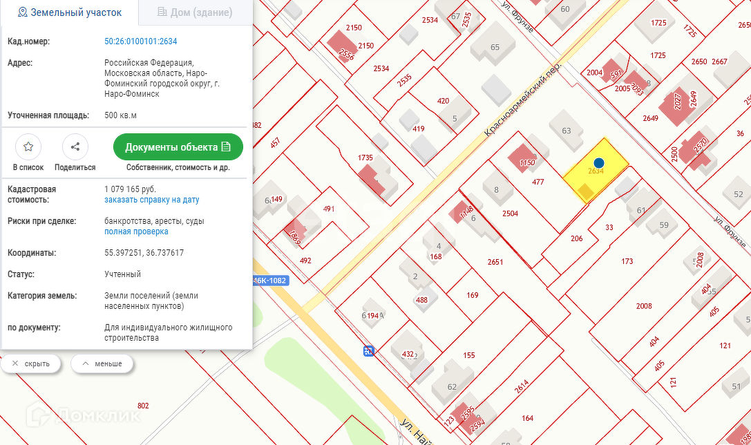 Участок под ИЖС, 5 сот. на продажу в Наро-Фоминске, улица Фрунзе
