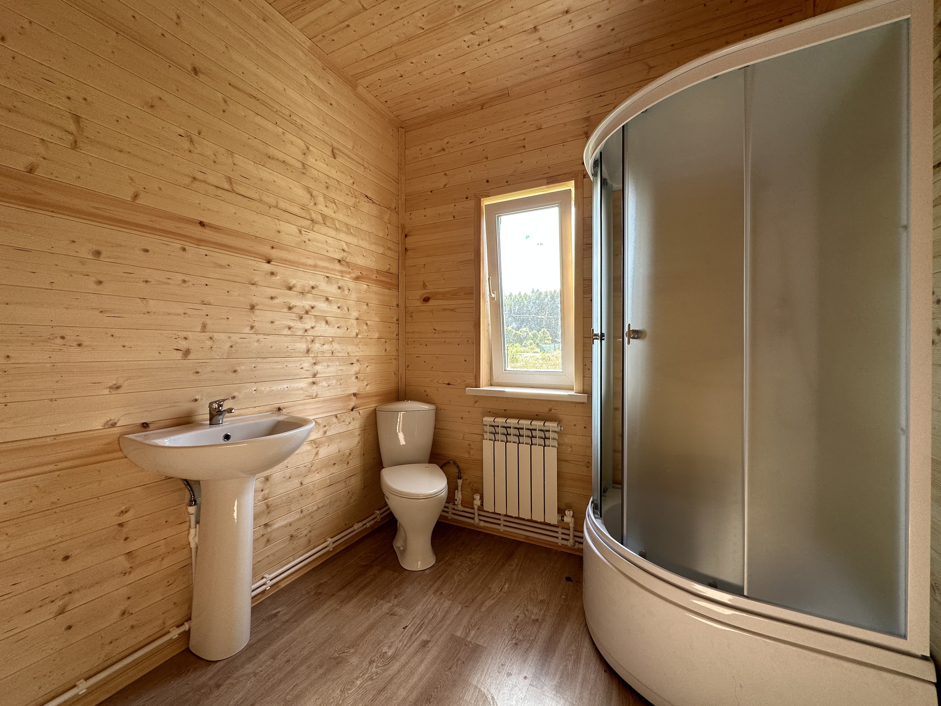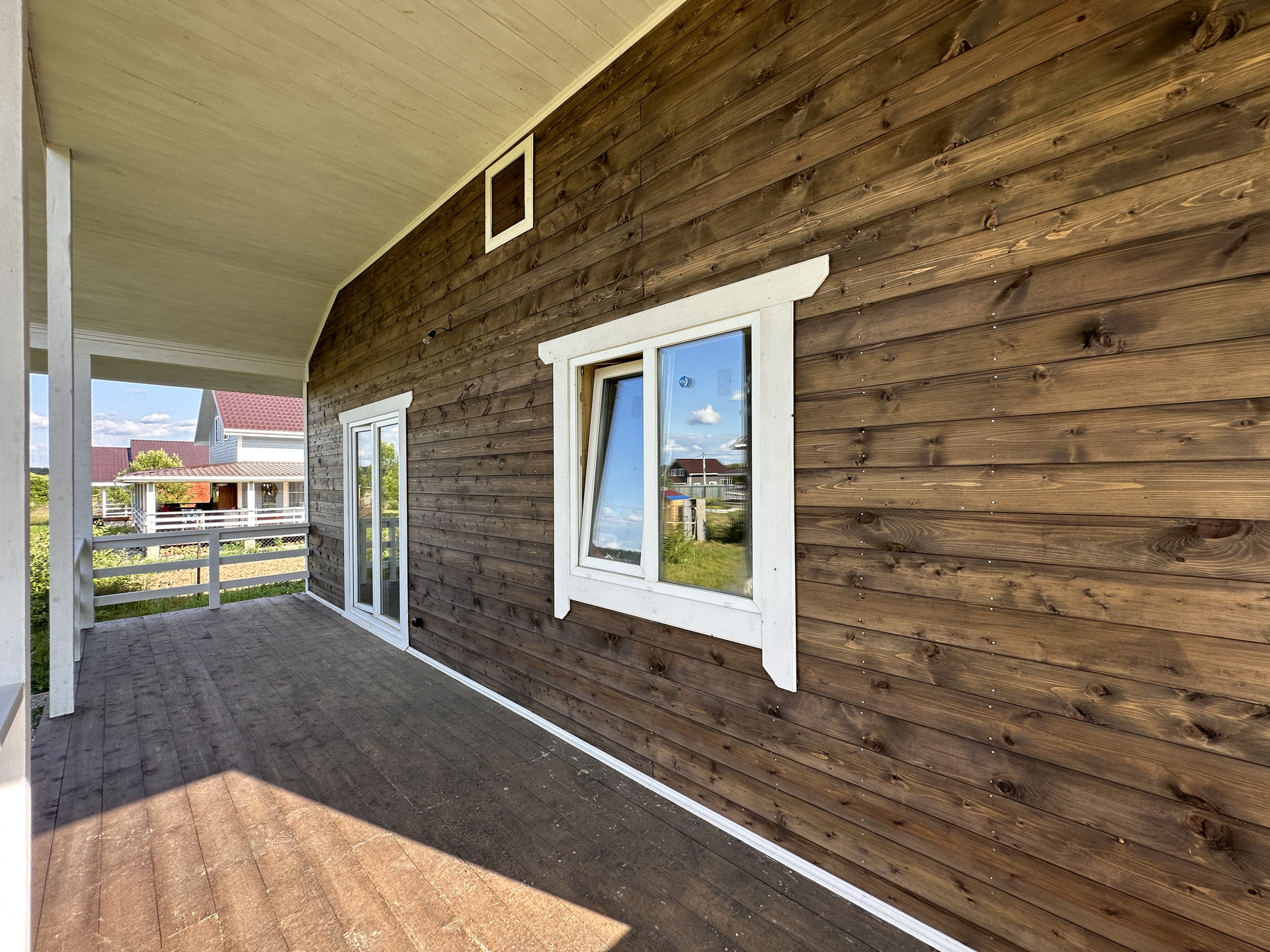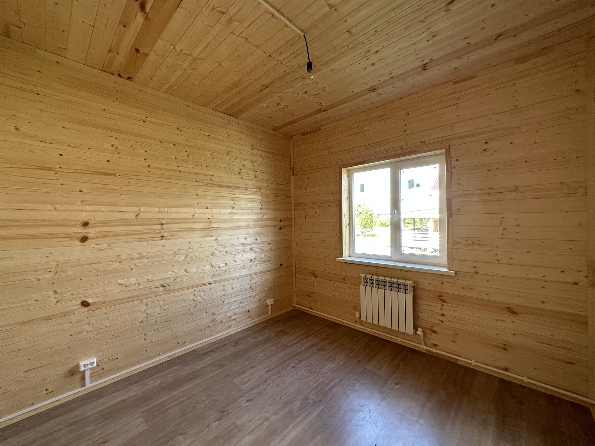 Материал дома: 1 этаж - брус сечением - 150х100 с утеплением; Внешняя/внутренняя отделка дома - имитация бруса; Окна - двухкамерные стеклопакеты; Крыша - металлочерепица с утеплением; Фундамент - ленточный армированный с утеплением; Полы - ламинат.