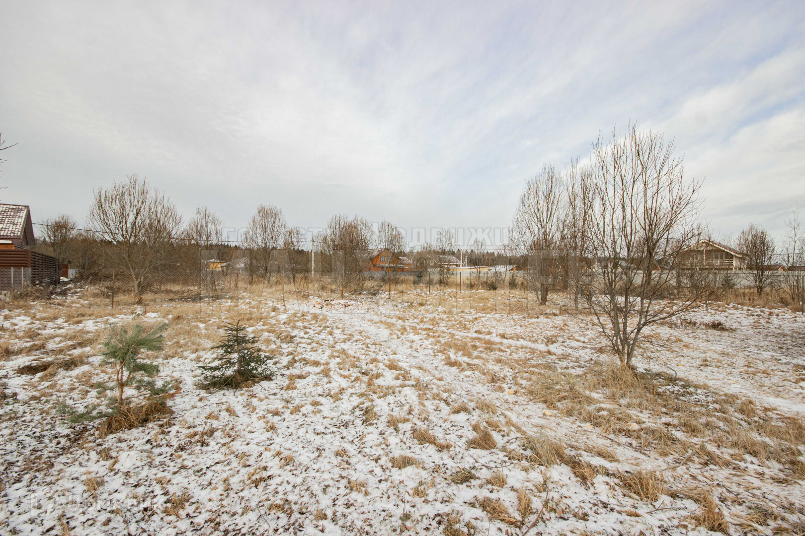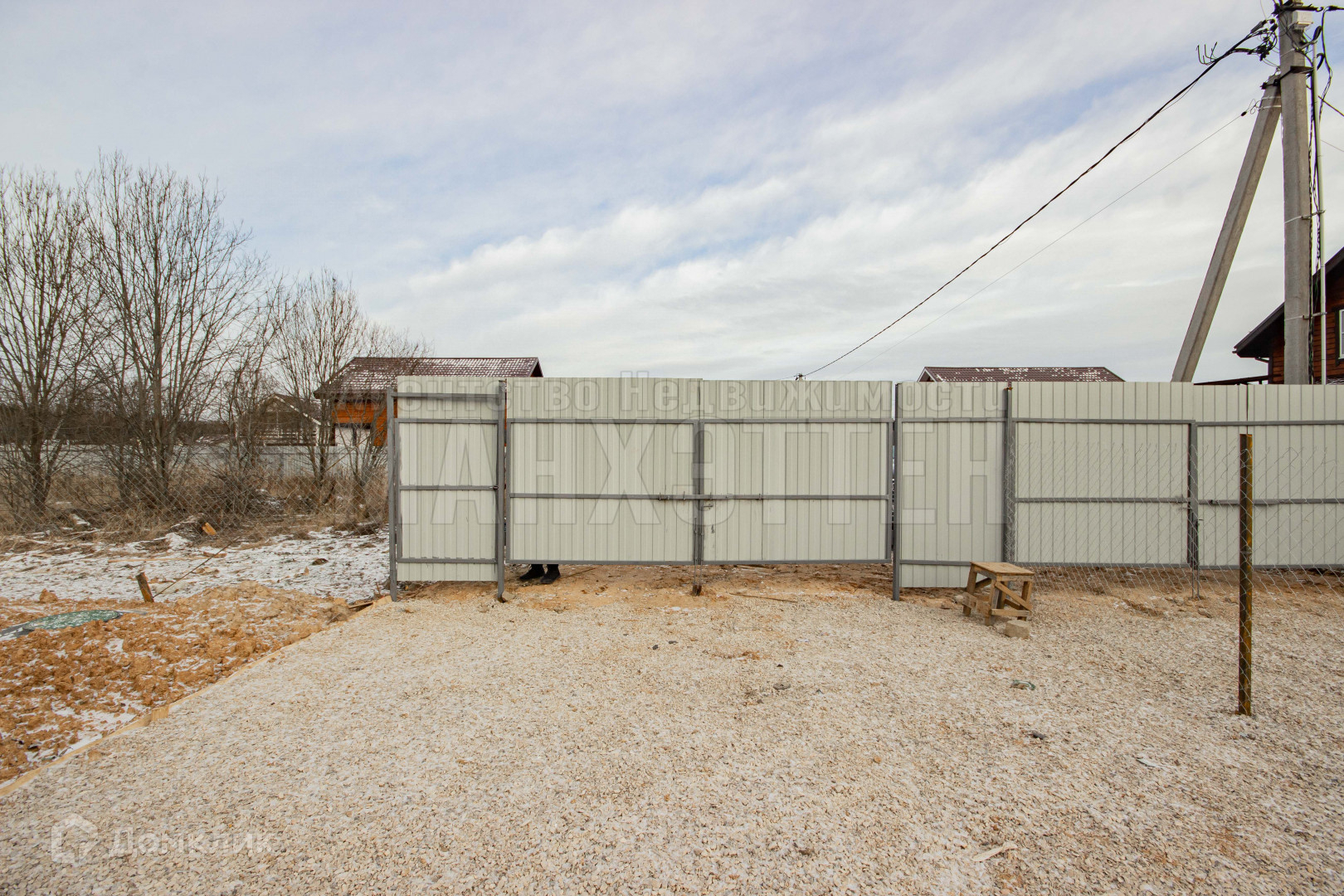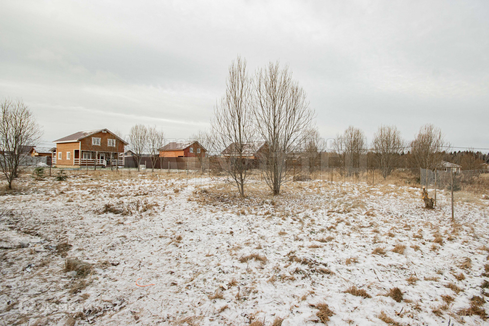 Огорожен: 1 сторона метал. штакетник, 3 стороны сетка-рабица;