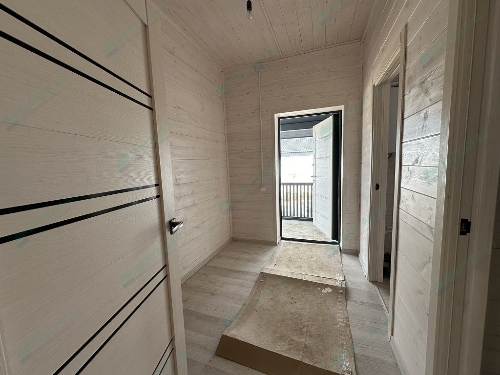 Планировка этажа – прихожая, котельная, холл, кухня - гостиная с выходом на террасу, санузел, 3 комнаты, кладовка.
