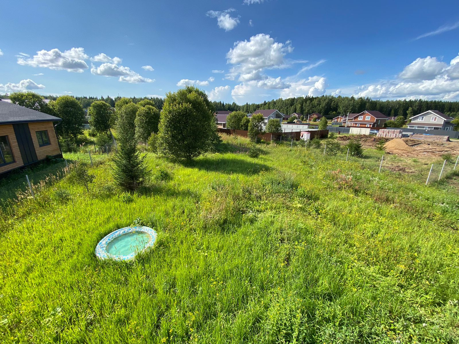 Участок 10 соток:  Выполнено межевание;  Огорожен; 1 стороны-профлистом, 3 стороны-сетка-рабица; Правильной прямоугольной формы; Подключено наружное освещение;
