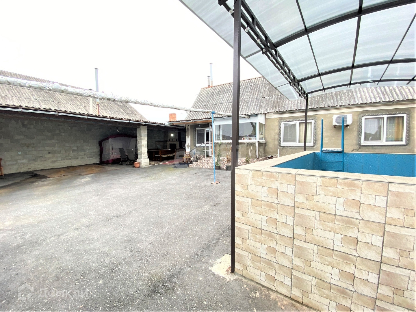 Продаётся капитальное домовладение. На территории имеется два дома, каминная зона, крытый стационарный бассейн, крытые парковочные места для нескольких автомобилей , большой просторный двор двор с клумбой.