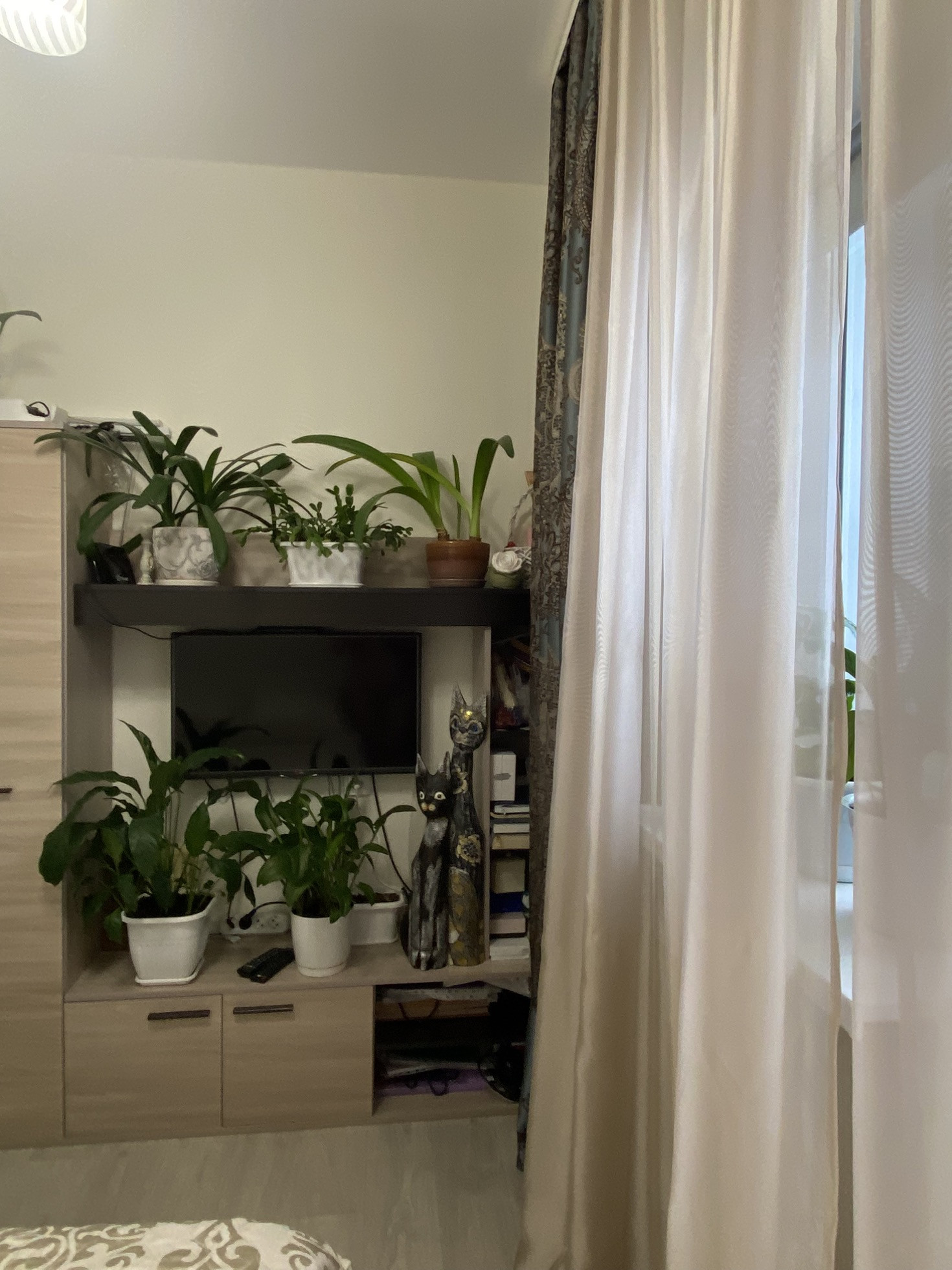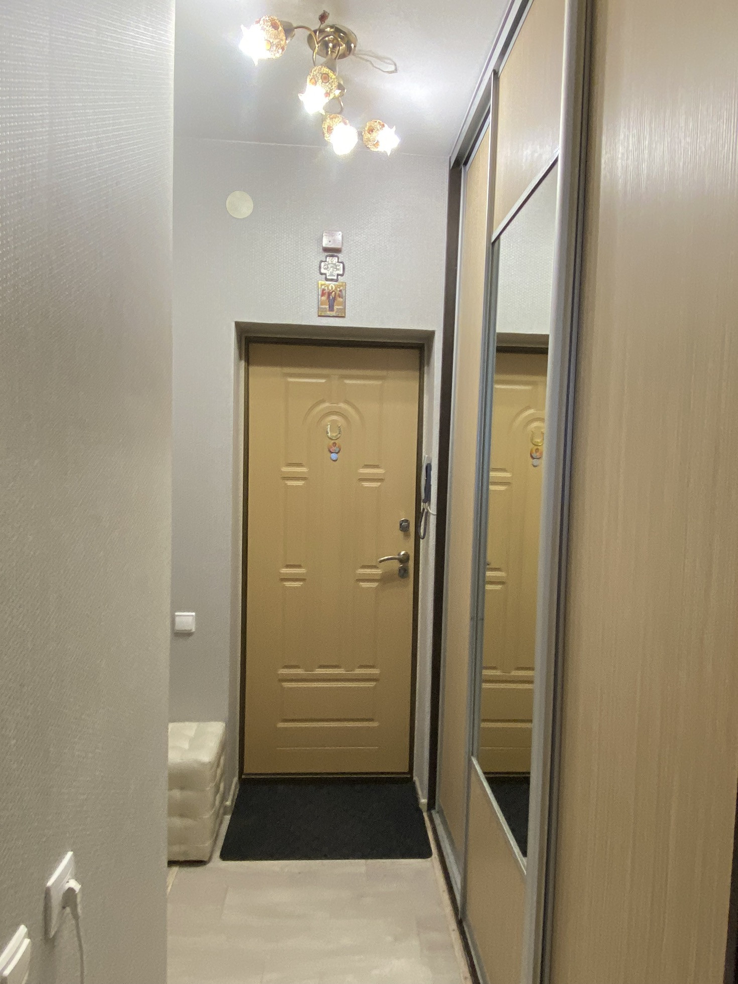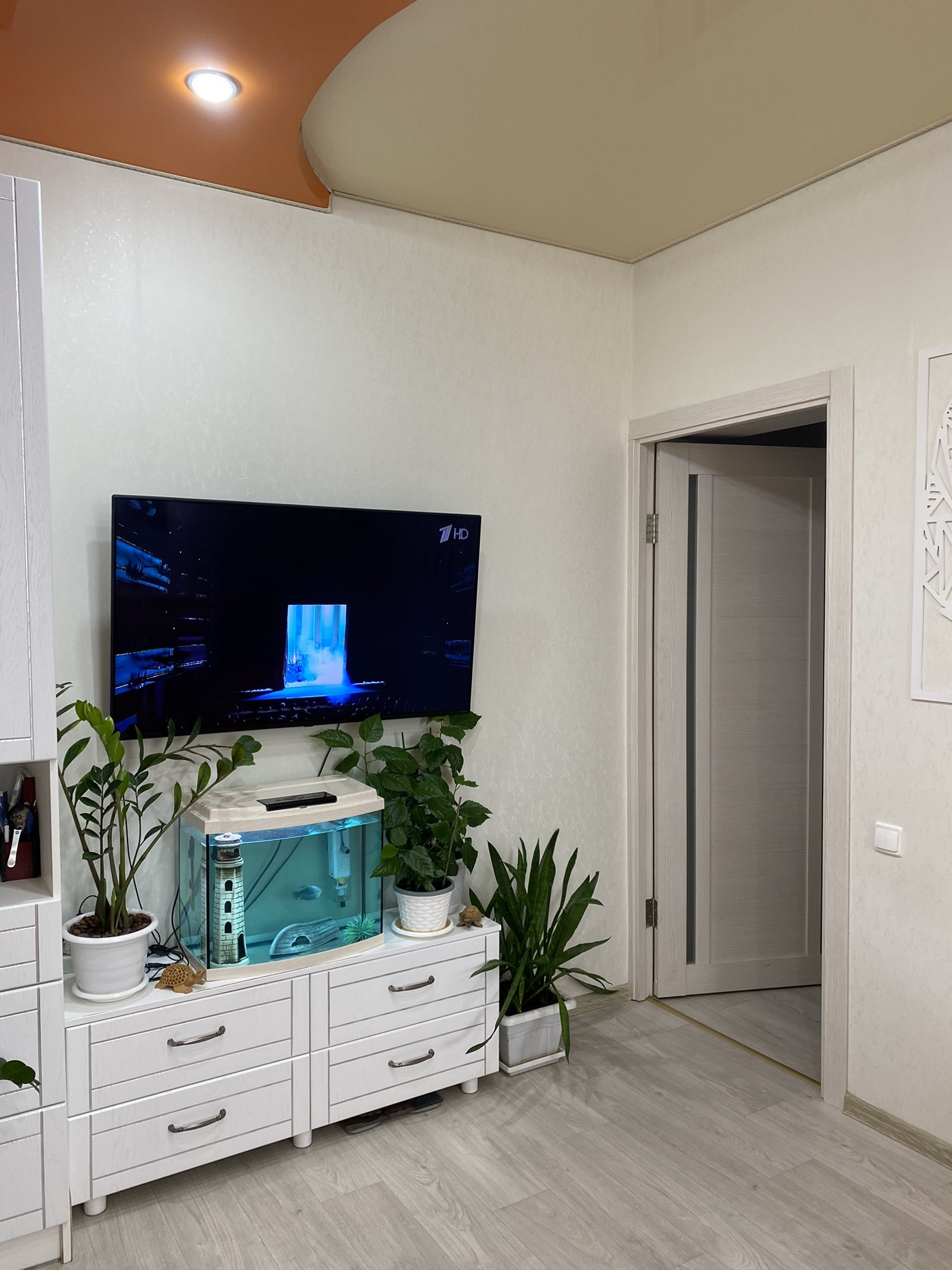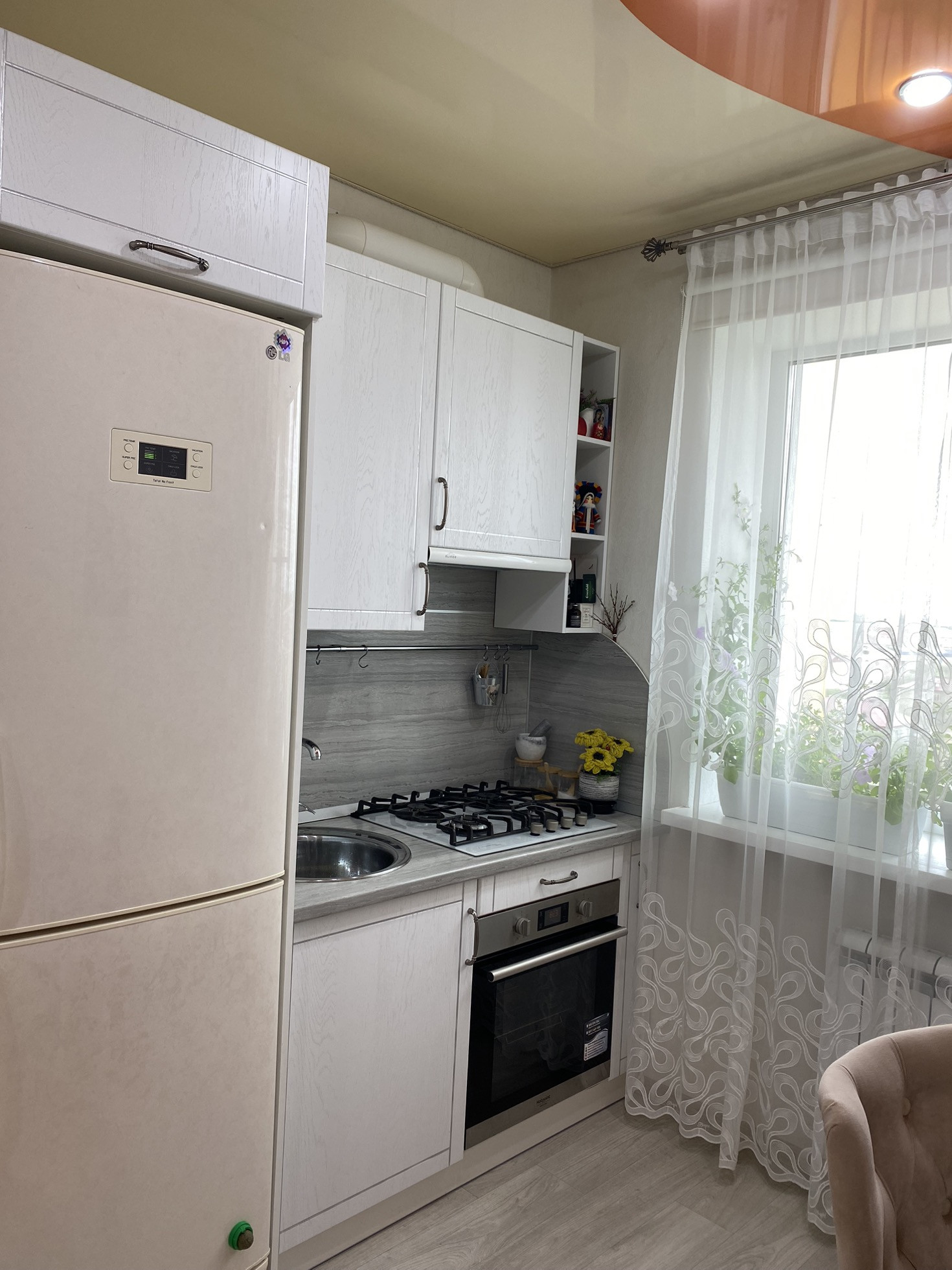 В жилой комнате и в ванной натяжные потолки. Ремонт не требуется.