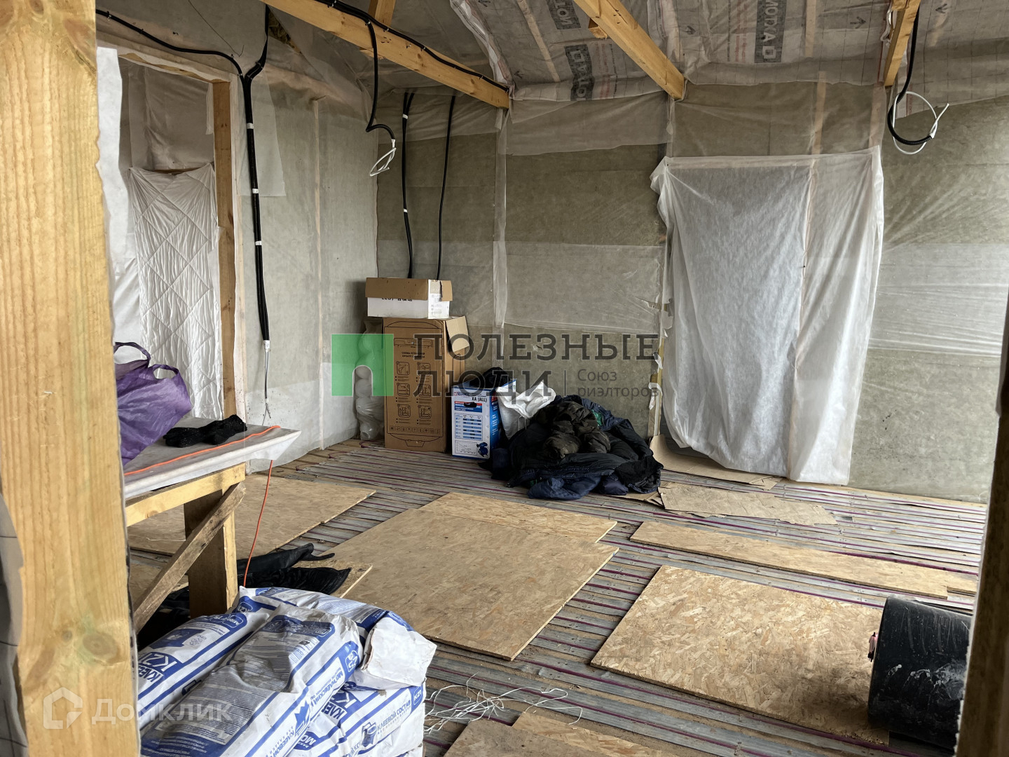 Стены зашиты мембраной согласно технологии. Крыша покрыта мягкой черепицей Шингласс. Отопление - водяной теплый пол(котел электрический).