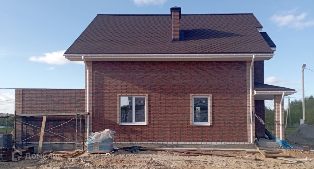 Материал стен - газосиликат, облицовка кирпичом. Фундамент - ленточный, заполнен грунтом, сверху бетонные плиты. Крыша утепленная. Потолки утепленные (20 см). Окна ПВХ. Входная дверь металлическая. Первый этаж - кухня-столовая, холл, бойлерная, санузел.