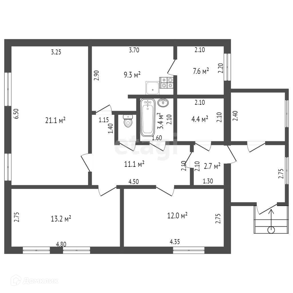 Три комнаты: 21,1кв. м., 13,2кв. м., 12 кв. м. Кухня 9,3 кв. м. + столовая 4,6 кв. м.