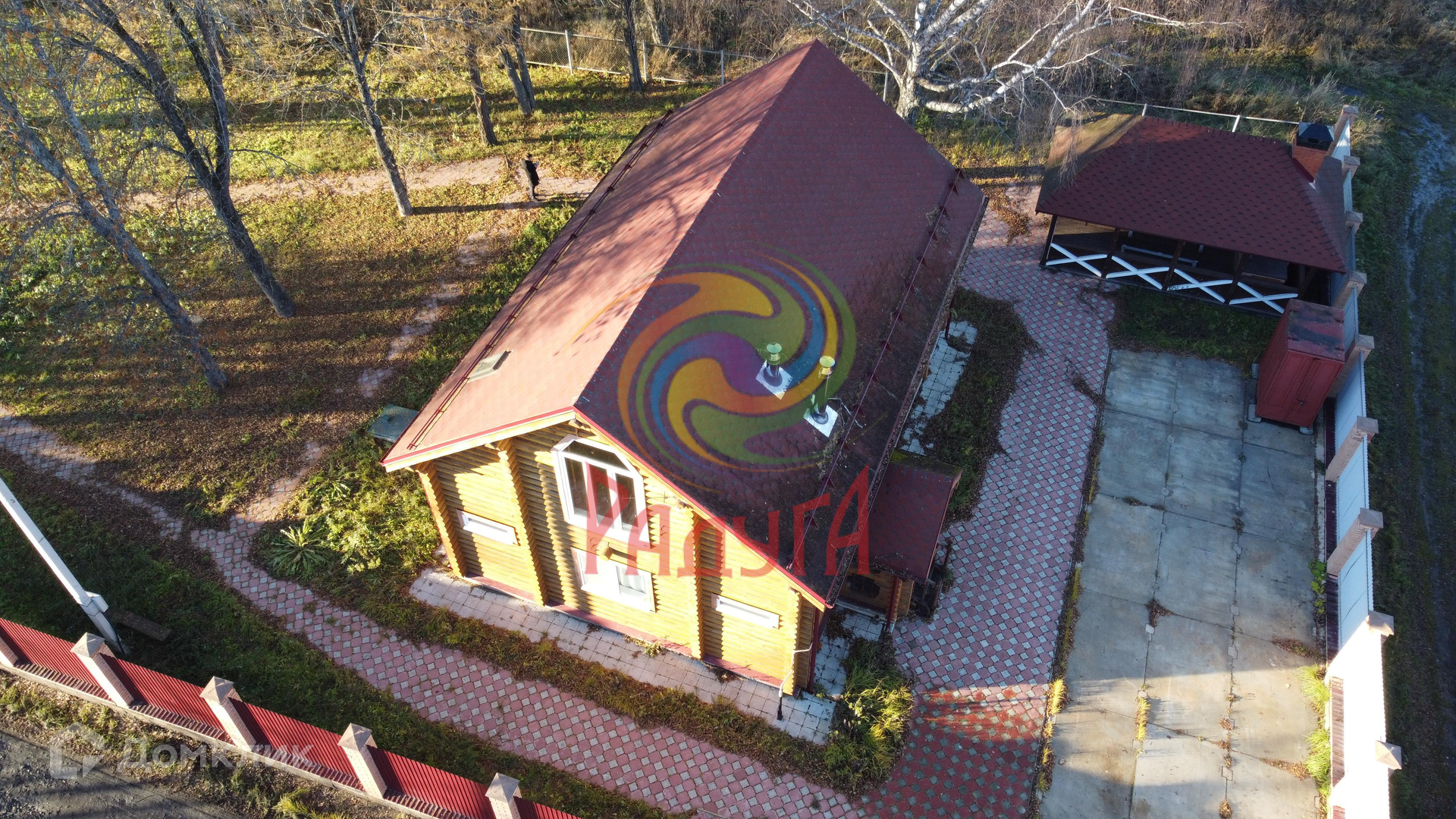 Участок ухожен, выложен брусчаткой, имеется большая беседка с мангальной зоной,