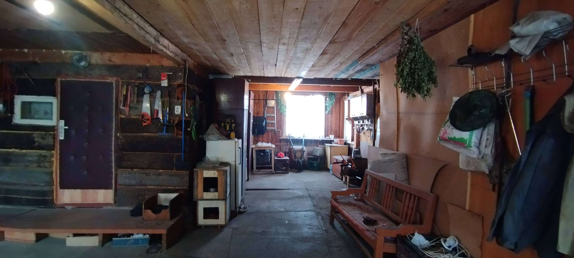 Отдельно расположен гараж со смотровой ямой из шпал и углярка.