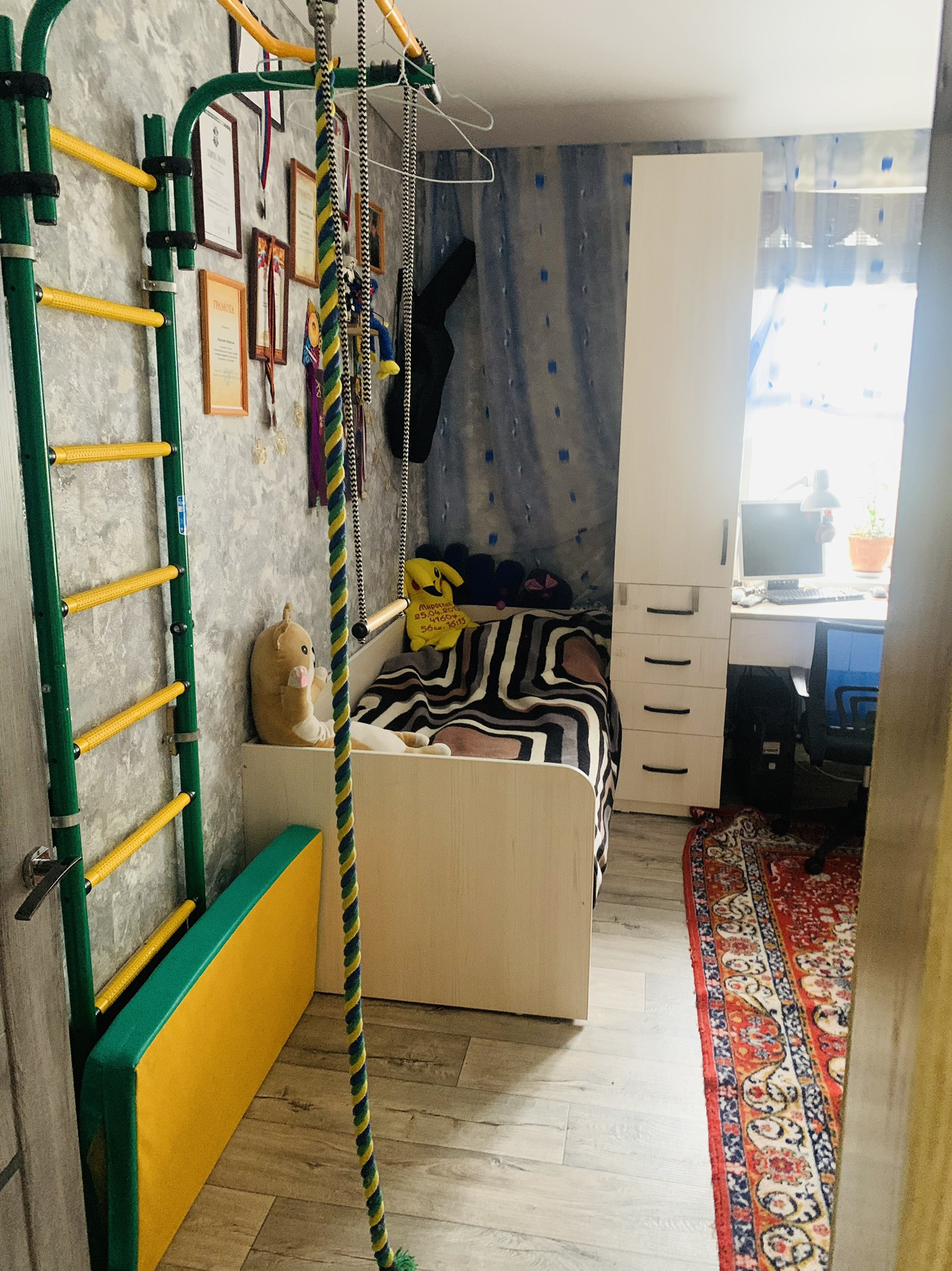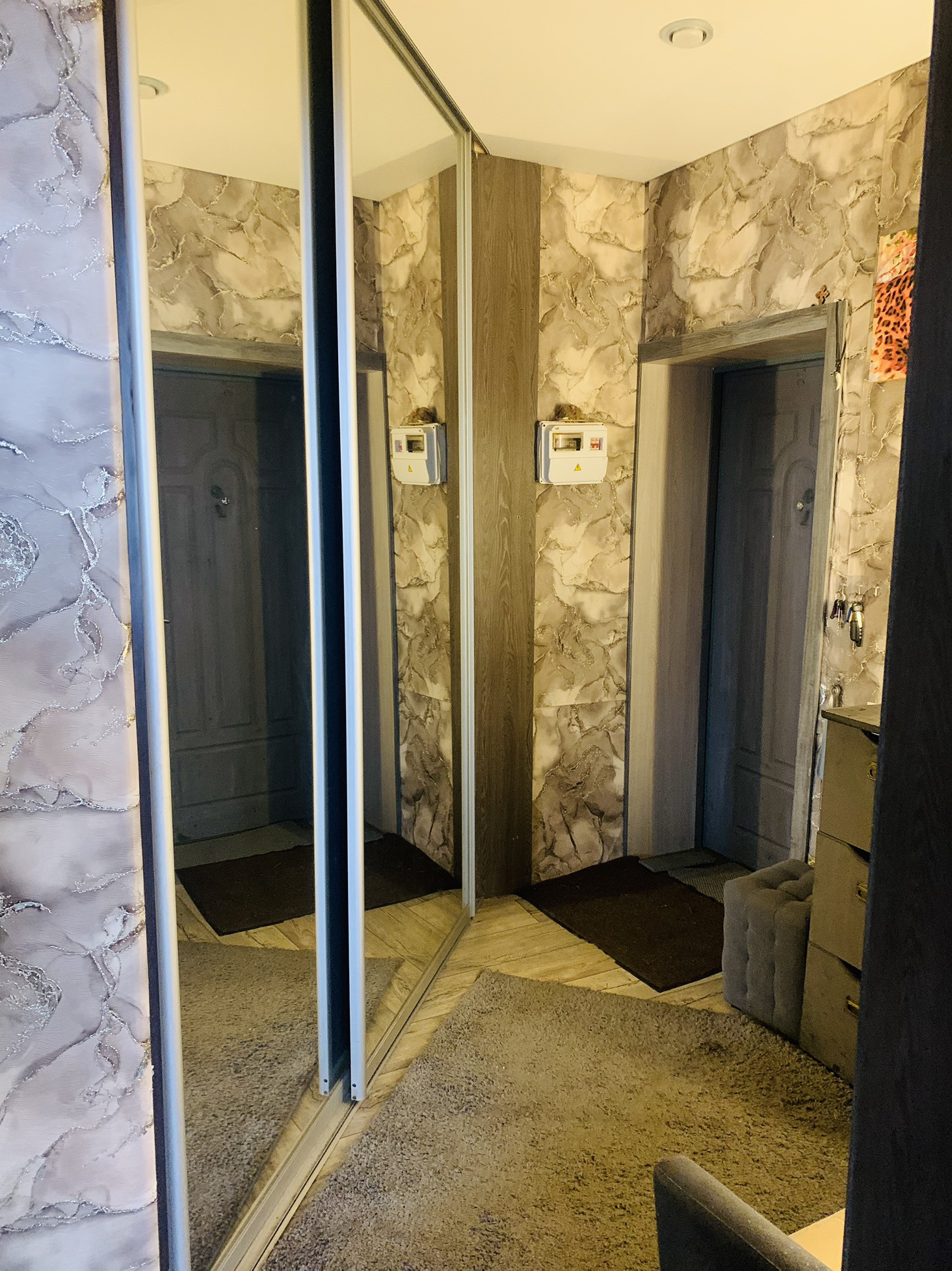 В квартире остаются две детских кровати с матрасами, два пенала и письменный большой стол, шкафы купе огромных 2 штуки, комоды в комнате и коридоре!