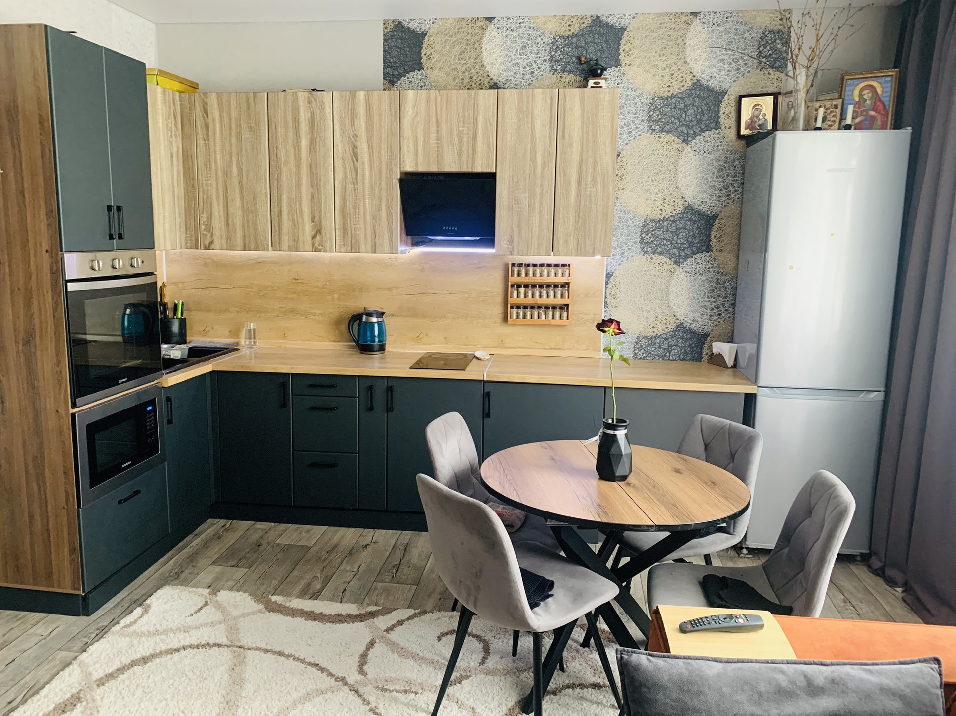 Кухня потрясающе продуманная и удобная стоимостью 350 тысяч! Варочная и вытяжка остаются.