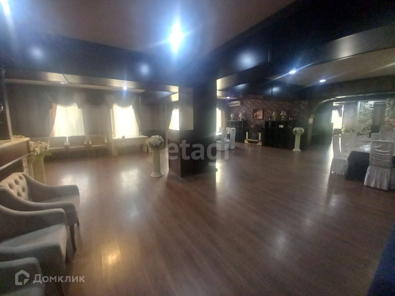 В помещении остается частично мебель: барная стойка, столы, стулья, кондиционеры, печи, мойки, складские помещения и многое другое. Очень хороший ремонт. Подойдет для таких целей как: открытие ресторана, банкетного и торжественного зала, магазина, офиса. большая  Номер в базе: 9499789. Район: Центр