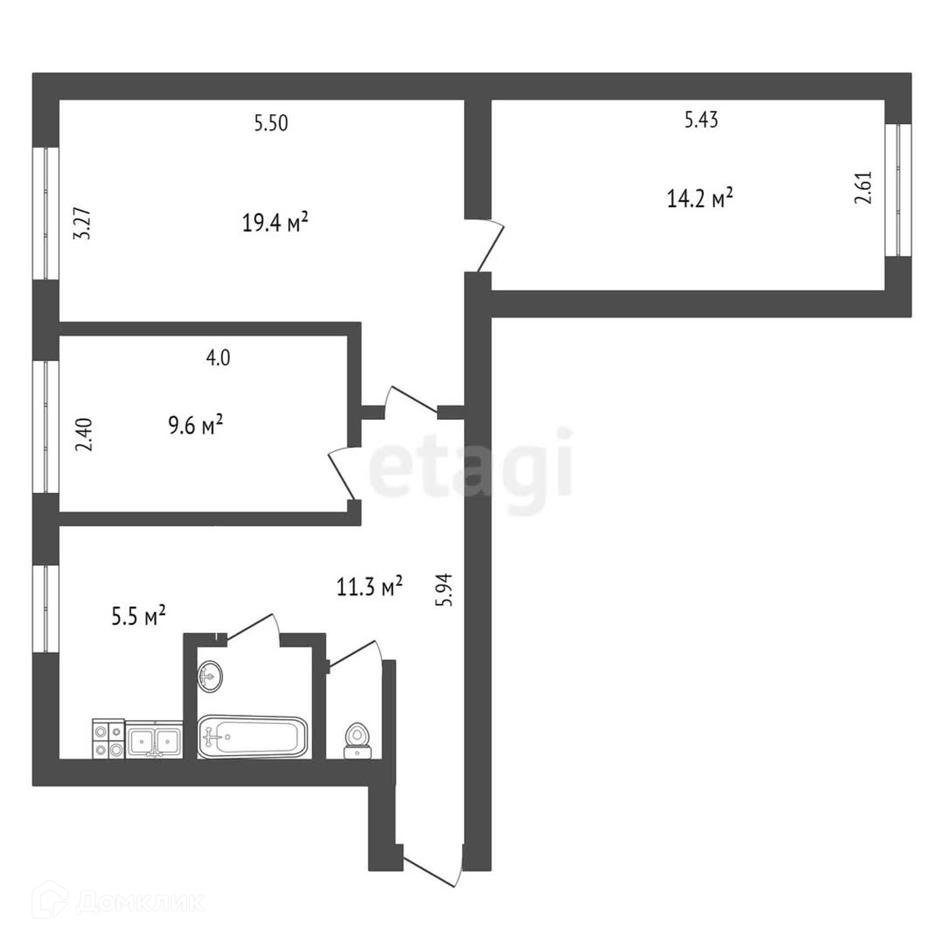 Общая площадь 62.9 м2