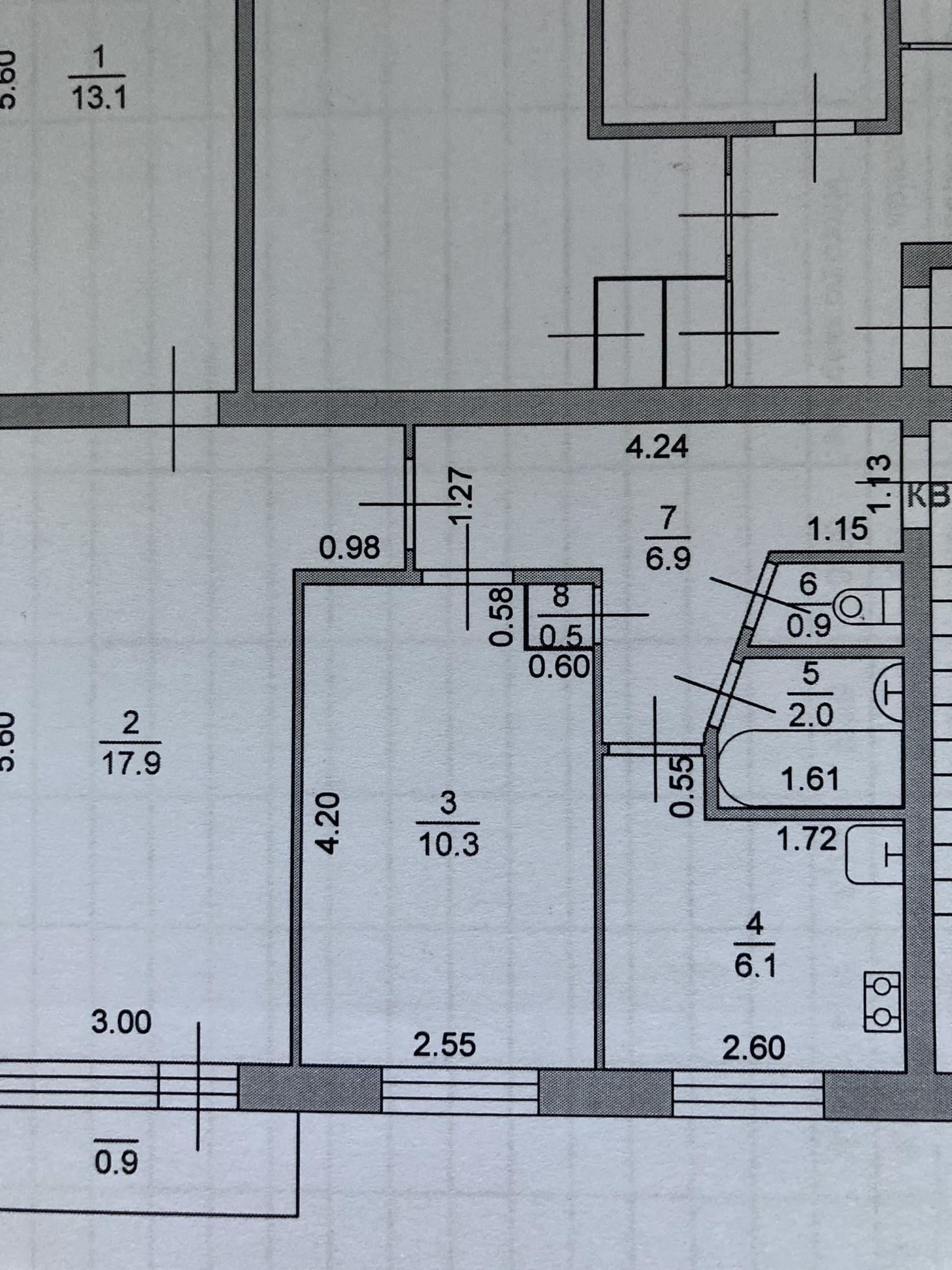 Площадь кухни 6.1 м2